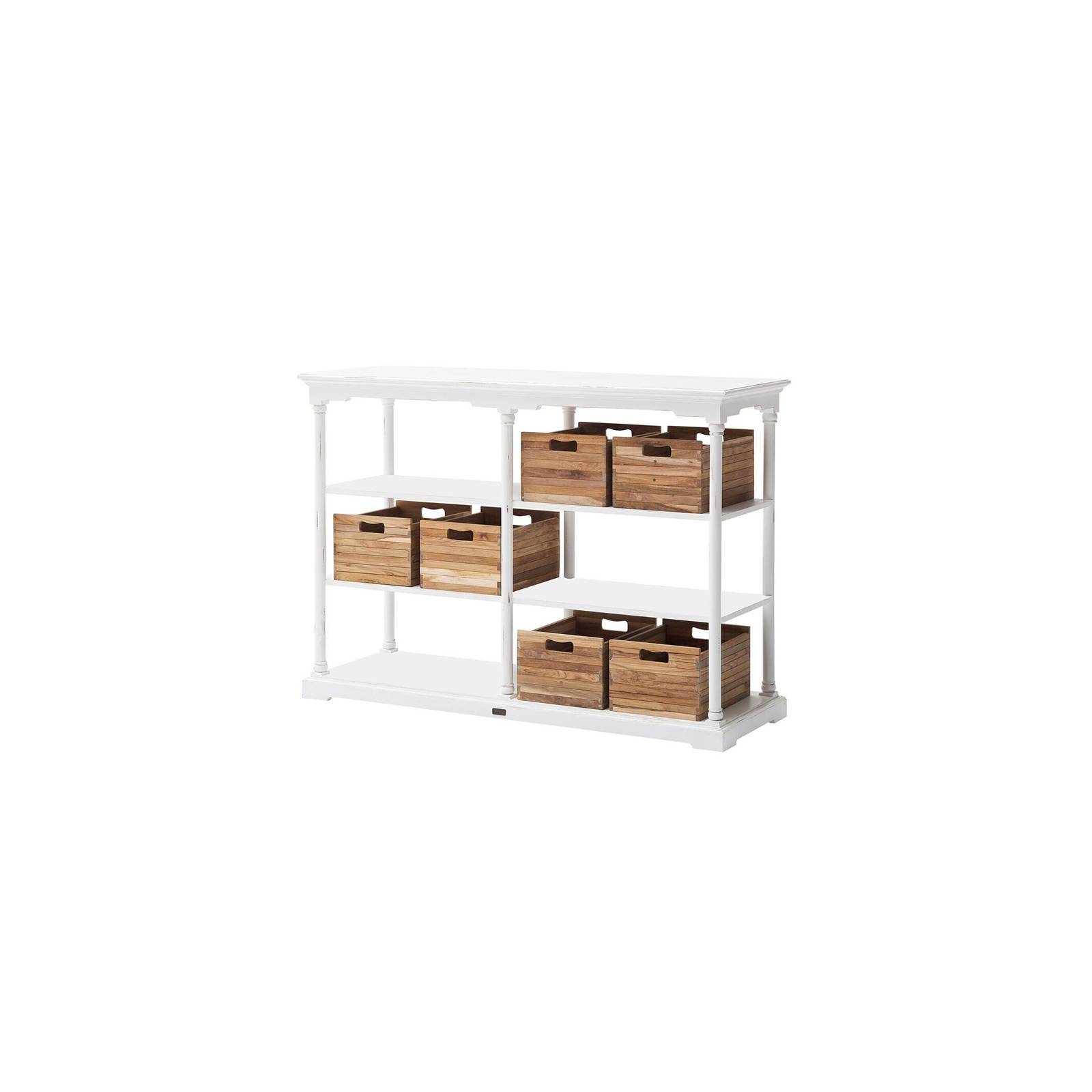 Cette console étagère à l'allure classique donnera de la luminosité à votre pièce grâce à sa couleur blanche. Elle est composée d'acajou massif tandis que ses six casiers sont en teck massif.