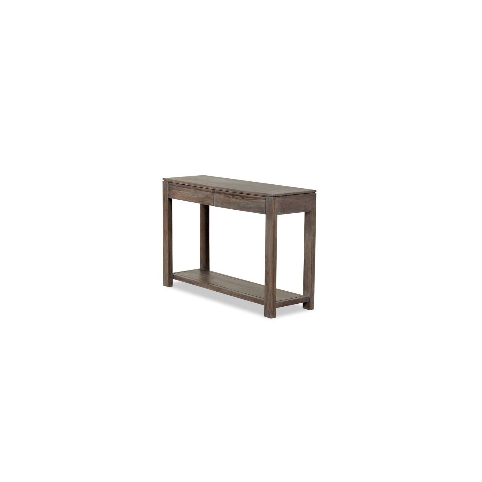 Très belle console en acacia massif à la couleur grisée, pour une atmosphère sobre et contemporaine, teintée d'un esprit ethnique avec le veinage nuancé du bois exotique qui compose ce meuble. Pratique, cette console sera le support de votre décoration grâce à ses deux plateaux, et trouvera sa place aussi dans une entrée que dans une chambre à coucher ou un salon. Bien qu'il s'agisse d'un meuble design, elle pourra également s'accorder à de la déco ethnique.