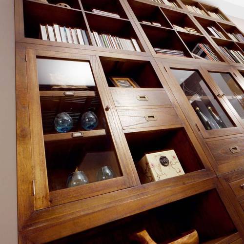 Laissez-vous tenter par ce meuble original composé de 14 tiroirs, ornés de poignées en laiton vieilli. Vous apprécierez le style original de cet éléments bibliothèque modulable Tali.