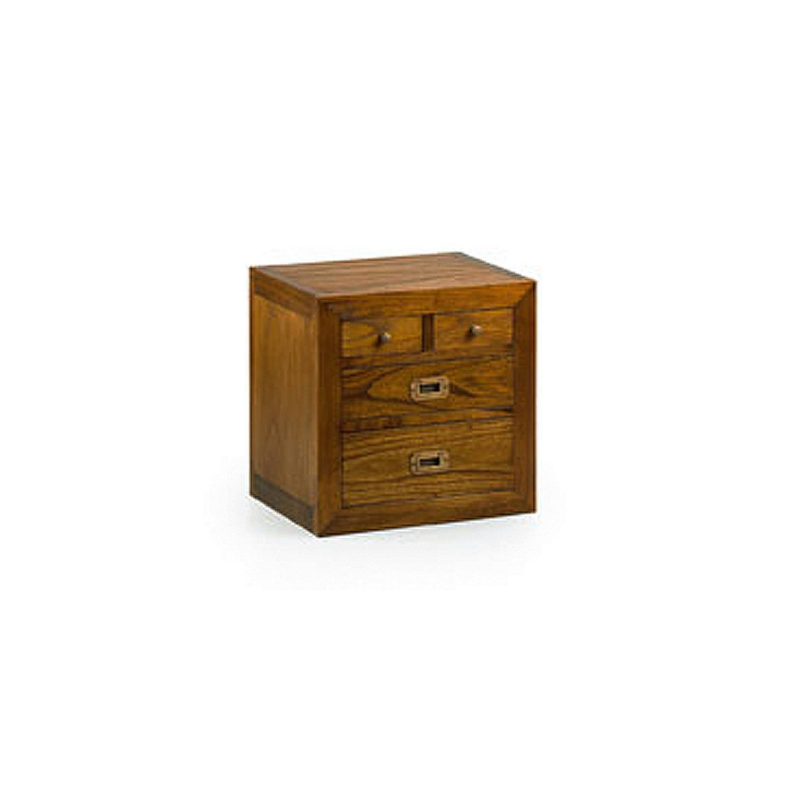 Le design moderne de ce petit meuble permettant de créer une bibliothèque modulable ajoutera une note contemporaine à votre pièce. Des lignes simples et épurées sont ornementées par les poignées en laiton vieilli qui ornent ses quatre tiroirs et qui viennent donner une petite touche rétro à ce meuble de rangement, inspiré du mobilier colonial qui étaient autrefois en vogue.