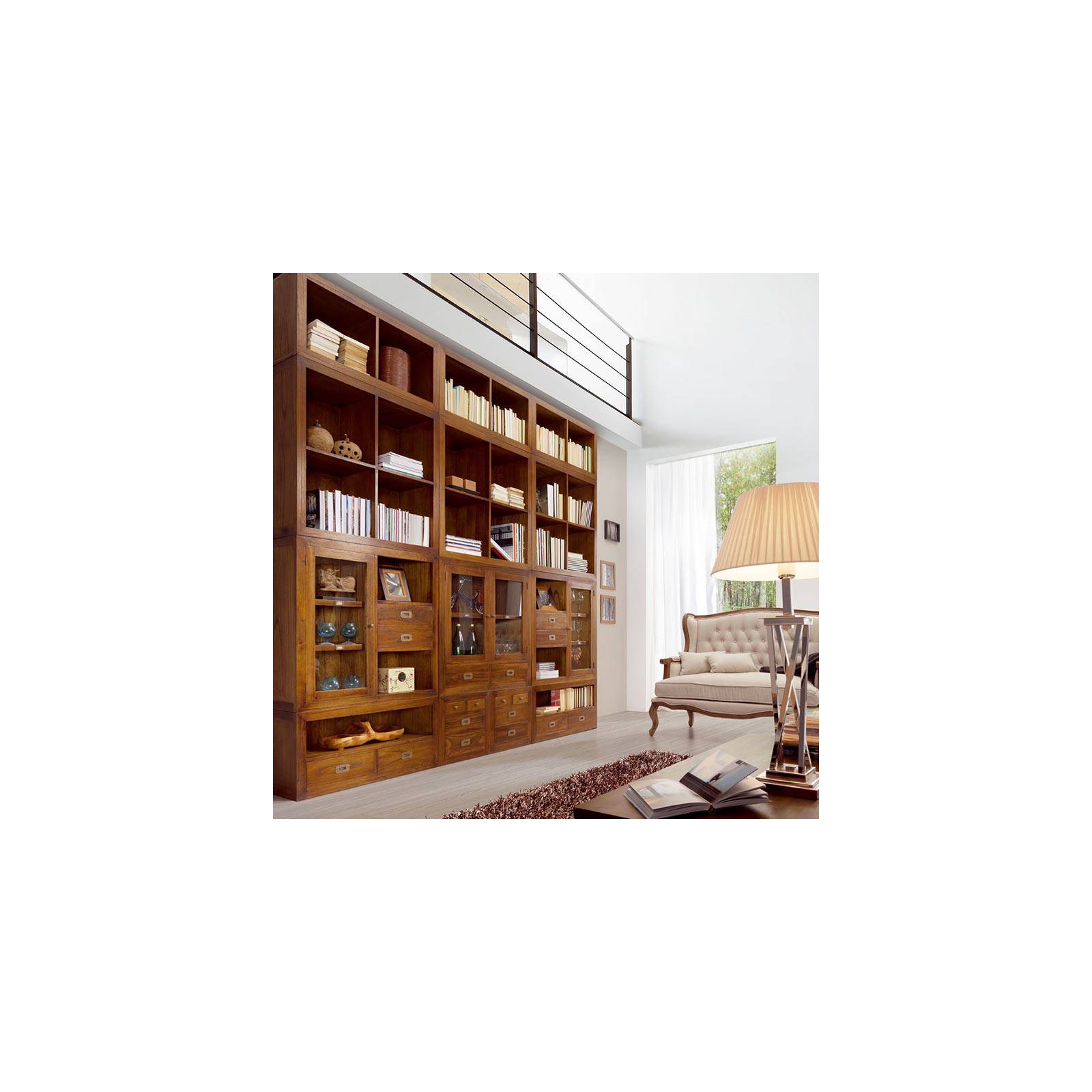 Ce joli petit élément modulable permettant de créer une bibliothèque modulable est un petit meuble de rangement très pratique, disposant de trois tiroir pour ranger des papiers et divers objets. Son compartiment vitré pourra quant à lui abriter une statuette pour créer un effet déco soigné et ainsi participer à créer une ambiance agréable dans votre bureau. Avec son bois exotique, du mindy massif, et ses poignées ornementées en laiton vieilli, ce meuble revêt un style ethnique avec des lignes épurées modernes, tout droit issu de la tendance néo-coloniale. Des pieds sont fournis avec ce meuble si vous souhaitez le surélever.