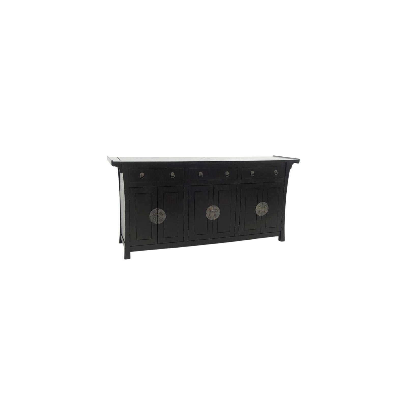 Cette grande enfilade 6 portes au style chinois vous charmera de ses formes stylisées. Vous apprécierez la beauté de son bois, de l'hévéa, qui est une essence cultivée de façon éco-responsable.