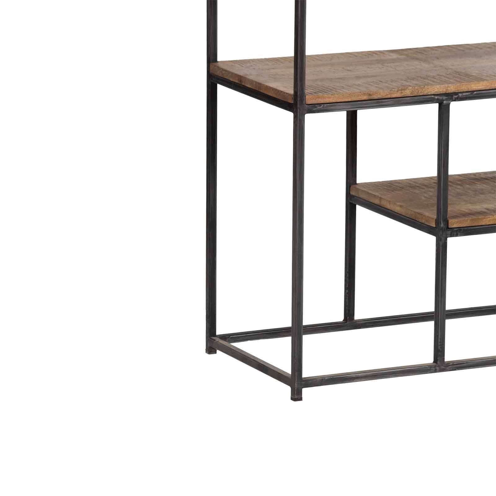 Avec son design, ce moyen modèle d'étagère offre un rangement généreux tout en ajoutant une touche artistique et moderne à votre espace. La structure en métal de 16 mm, polie à la main avec une finition noire antique, confère à l'étagère une robustesse industrielle et un charme intemporel. Les sept niveaux déstructurés, disposés de manière créative, offrent un espace varié pour exposer vos objets préférés, que ce soit des livres, des plantes, ou des objets décoratifs. Les plateaux en manguier massif de 16 mm d'épaisseur, teintés naturellement et protégés par un vernis polyuréthane, ajoutent une chaleur naturelle au design tout en mettant en valeur la beauté authentique du bois.