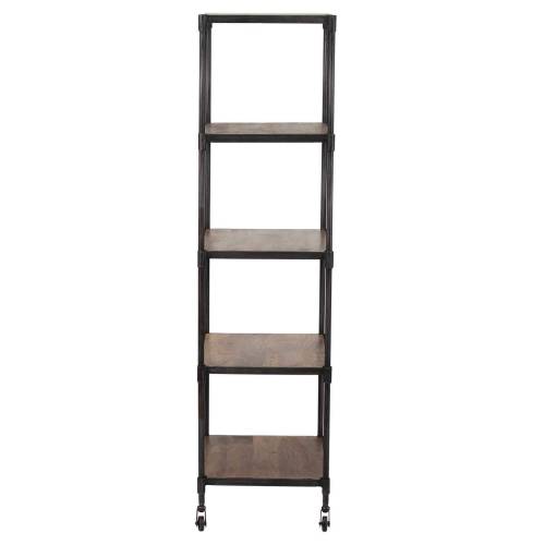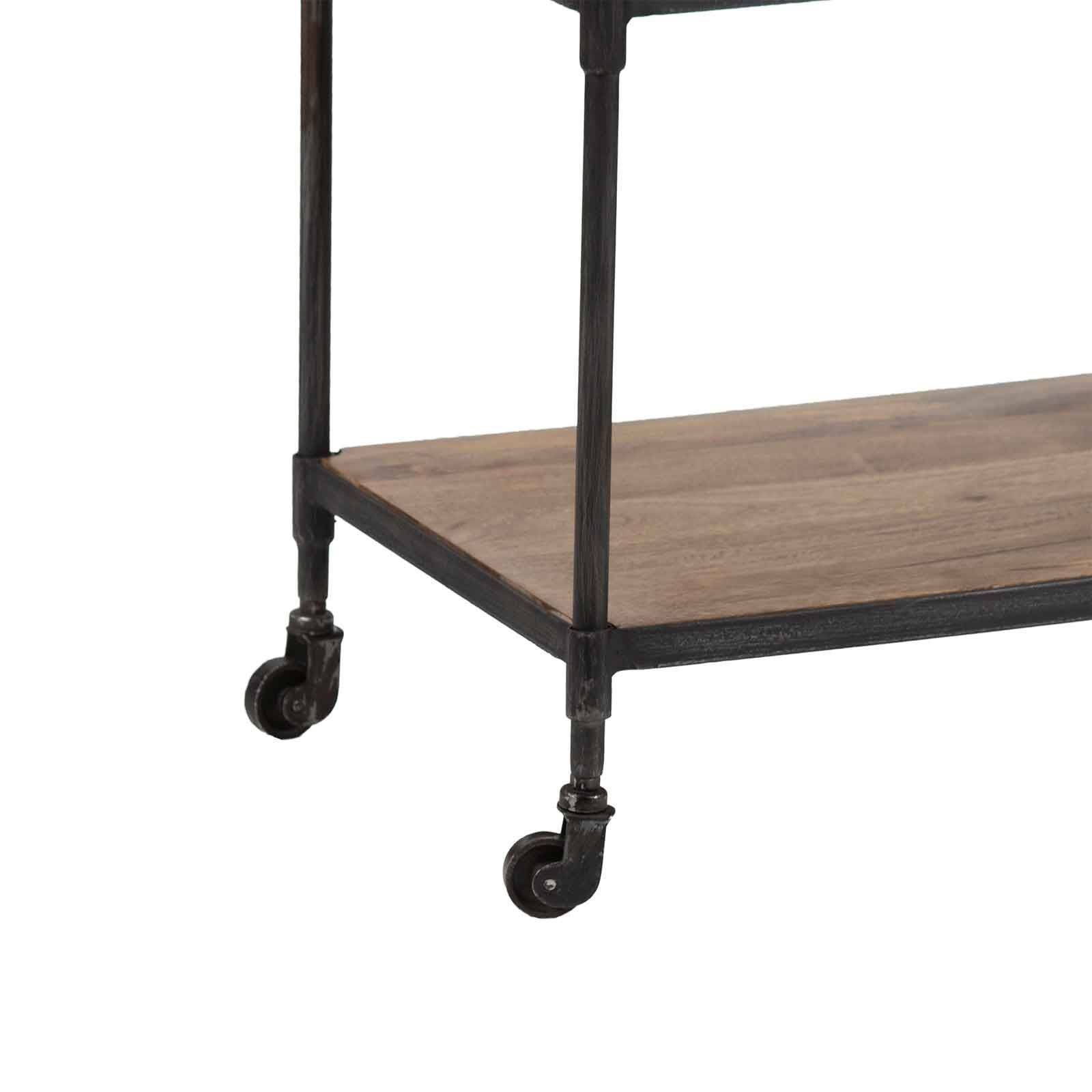 Plongez dans l'univers moderne et fonctionnel de l'étagère à roulettes, qui combine le charme naturel du manguier massif avec l'audace du métal industriel.