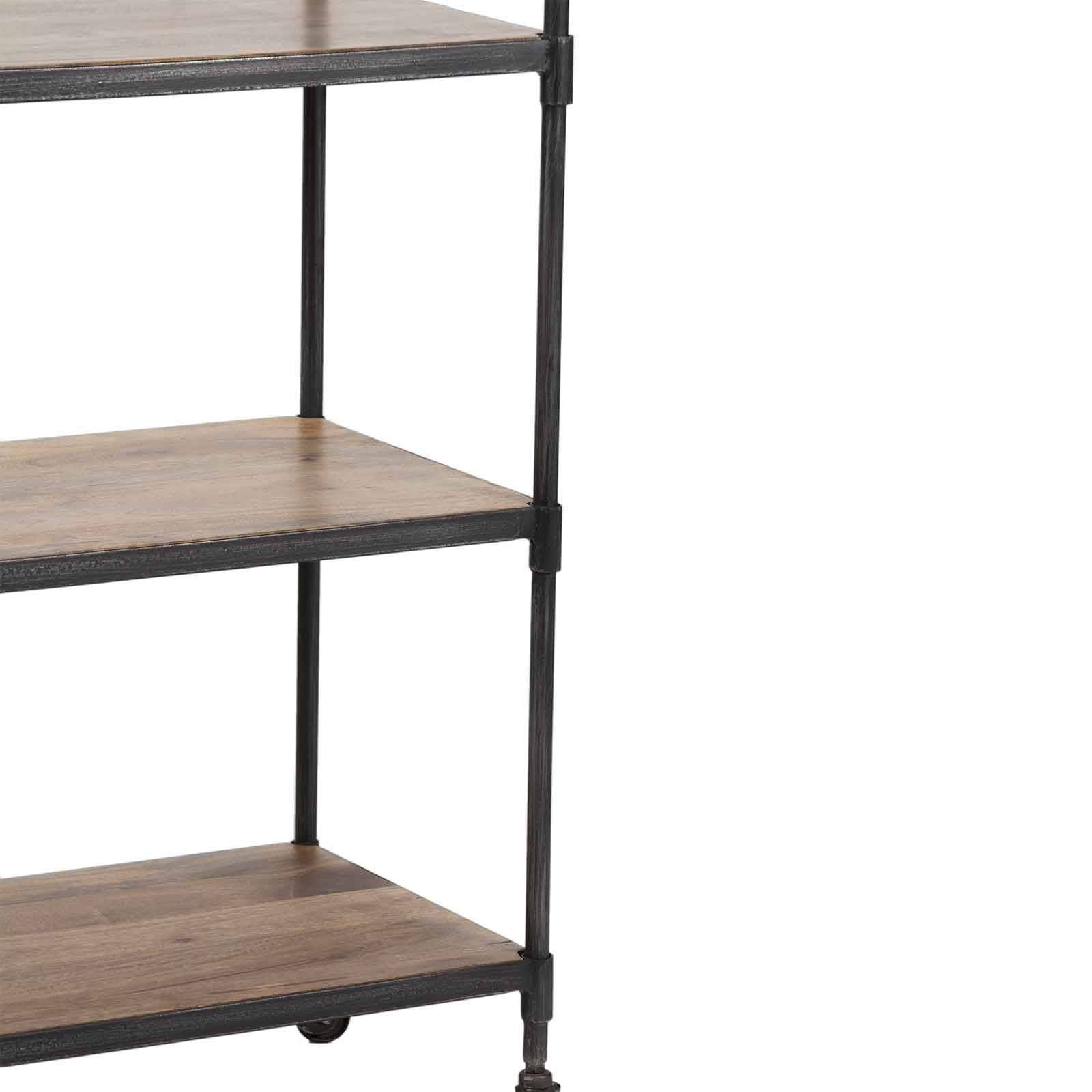 Cette étagère ouverte à 4 niveaux est un équilibre parfait entre style et praticité, offrant un espace de rangement élégant et la liberté de mouvement grâce à ses 4 roulettes au style industriel. La structure en métal de 20 mm, méticuleusement peinte et polie à la main avec une finition noire antique, donne à l'étagère une présence artistique qui attire le regard. Chaque détail reflète une attention particulière à la qualité, ajoutant une touche d'élégance industrielle à votre intérieur.