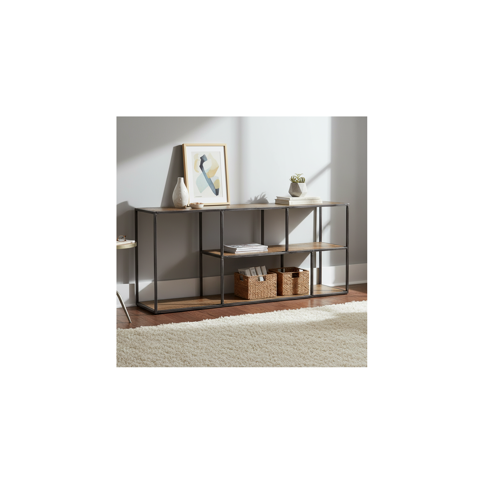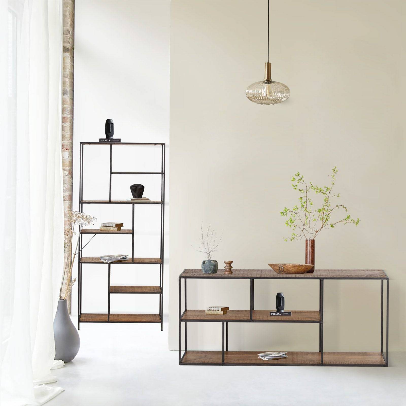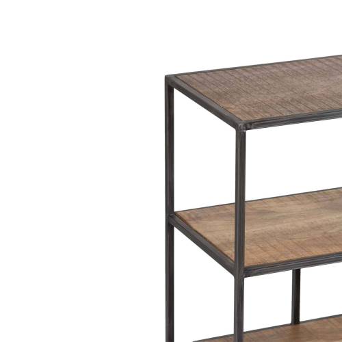 L'etagere basse bois metal déstructurée avec trois étagères offre une solution de rangement élégante, et ajoute une touche artistique à votre intérieur.