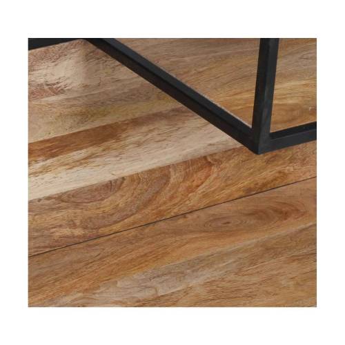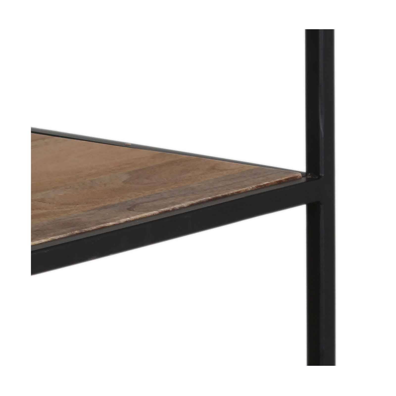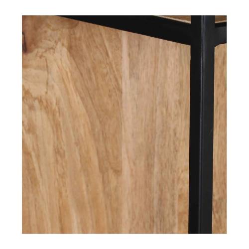 La structure en métal de 16 mm, soigneusement polie à la main avec une finition noire antique, confère à l'étagère un caractère industriel raffiné. Les neuf niches, disposées de manière ordonnée, créent un design moderne et déstructuré, ajoutant une dimension artistique à votre espace. Le plateau en manguier massif de 16 mm d'épaisseur, teinté naturellement et protégé par un vernis polyuréthane, offre une surface solide et naturellement belle pour exposer des objets variés. Le mariage du bois et du métal crée un contraste visuel captivant, ajoutant une touche de sophistication à l'ensemble.