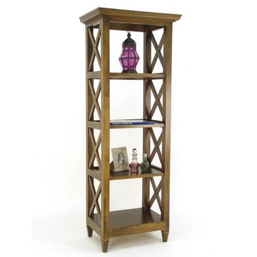 Peu encombrante, cette jolie étagère colonne bois massif aux motifs de croisillons comporte quatre compartiments pour y ranger vos livres et objets décoratifs.