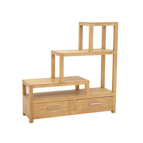 Magnifique étagère à la forme originale d'escalier en bois, qui sera un parfait support pour votre décoration qui sera alors immédiatement mise en valeur. Ce ravissant meuble est polyvalent, en effet il dispose de deux tiroirs situés à sa base, qui accueilleront vos documents ou encore de petits objets du quotidien tel que des chargeurs de téléphone ou autres accessoires. Réversible, cette étagère escalier bois pourra être utilisée d'un côté comme de l'autre.