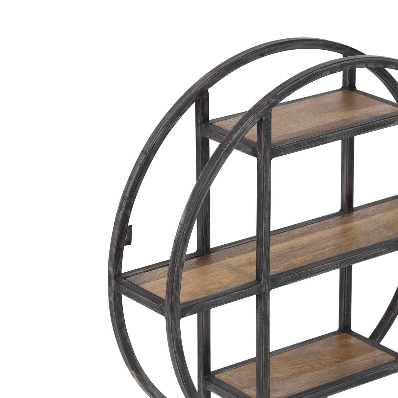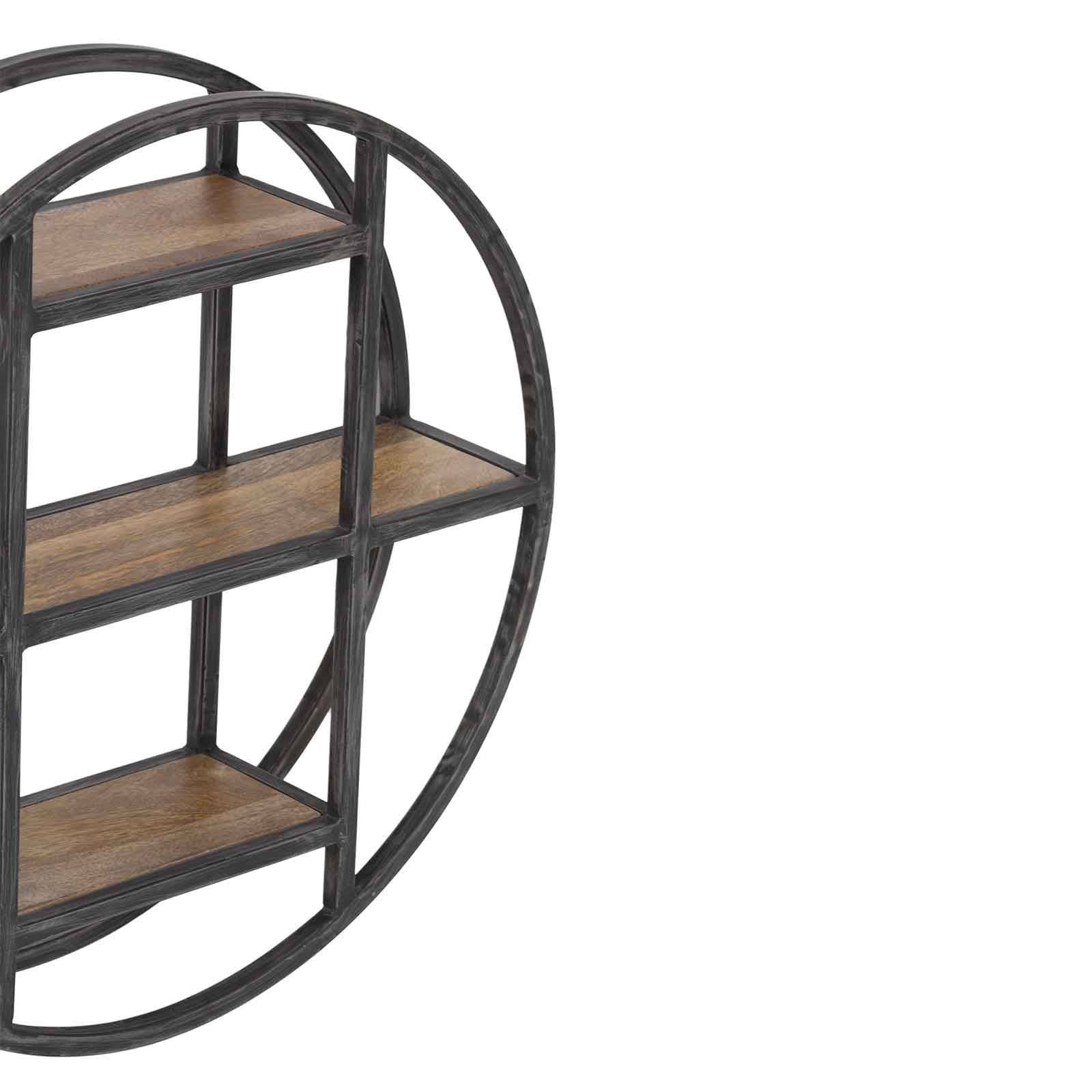 Conçue avec soin, cette étagère marie l'esthétique industrielle moderne avec la chaleur du bois naturel. Le manguier massif apporte une touche de rusticité et d'authenticité, tandis que la structure en métal ajoute une robustesse industrielle, créant un équilibre visuel unique. Avec sa forme ronde, cette étagère murale offre un design distinctif qui se démarque dans n'importe quelle pièce. Elle offre un espace généreux pour exposer vos objets préférés, que ce soient des livres, des décorations, ou des plantes, ajoutant ainsi une dimension artistique à votre mur.