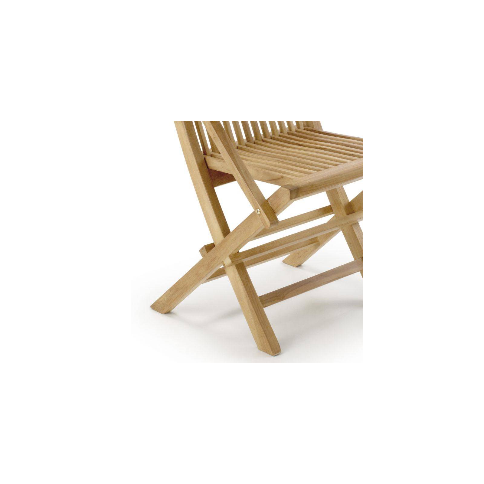 Vous avez une belle table de jardin en teck massif ? Il serait dommage de ne pas avoir des fauteuils en teck qui lui seront assortis ! Ce modèle de fauteuil pliant jardin teck est composé de teck massif. Un très beau bois exotique qui a non seulement une belle allure mais qui est en plus très résistant ! Qu'il fasse très chaud, qu'il pleuve, qu'il neige… Le bois de teck ne bouge pas. Il a simplement tendance à griser sous l'action du soleil. Si vous voulez que votre salon de jardin en teck retrouve sa couleur chaude, utilisez une huile prévue à cet effet.