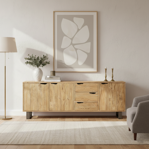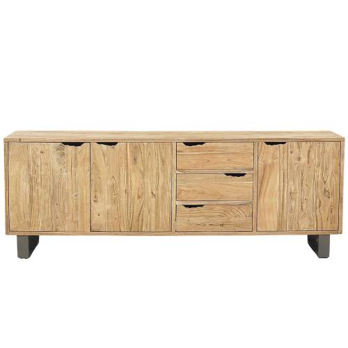 Massif, mais élégant, le grand buffet bois naturel en acacia et métal touche par son authenticité. Une mise en ambiance immédiate et chaleureuse inspirée d'un intérieur exotique chic au design revisité.