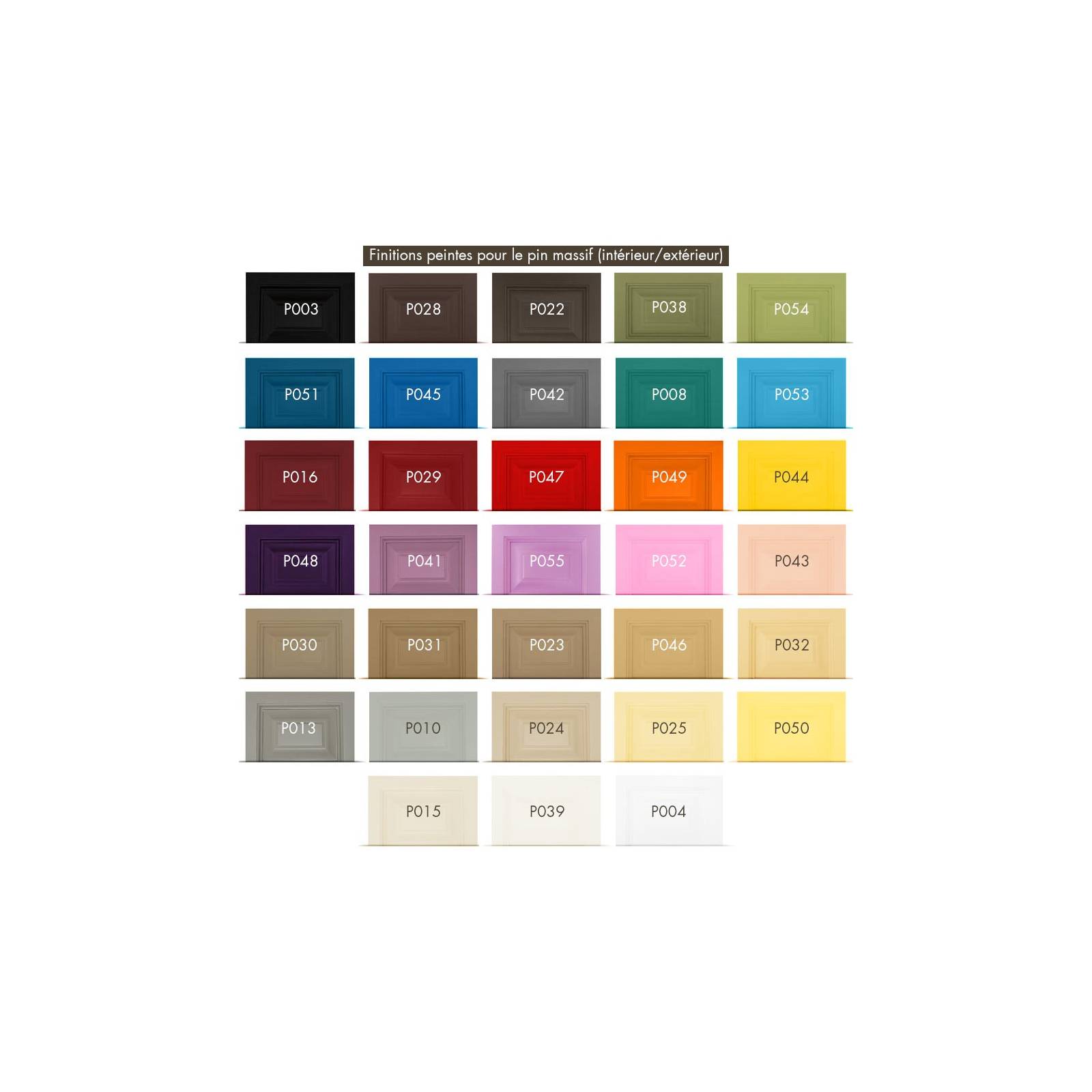 Nous vous remercions de préciser la référence couleur des finitions choisies en commentaire lors du passage de votre commande. Exemple visible sur la photo : extérieur P004 / intérieur P004 avec un plateau en chêne massif P001.