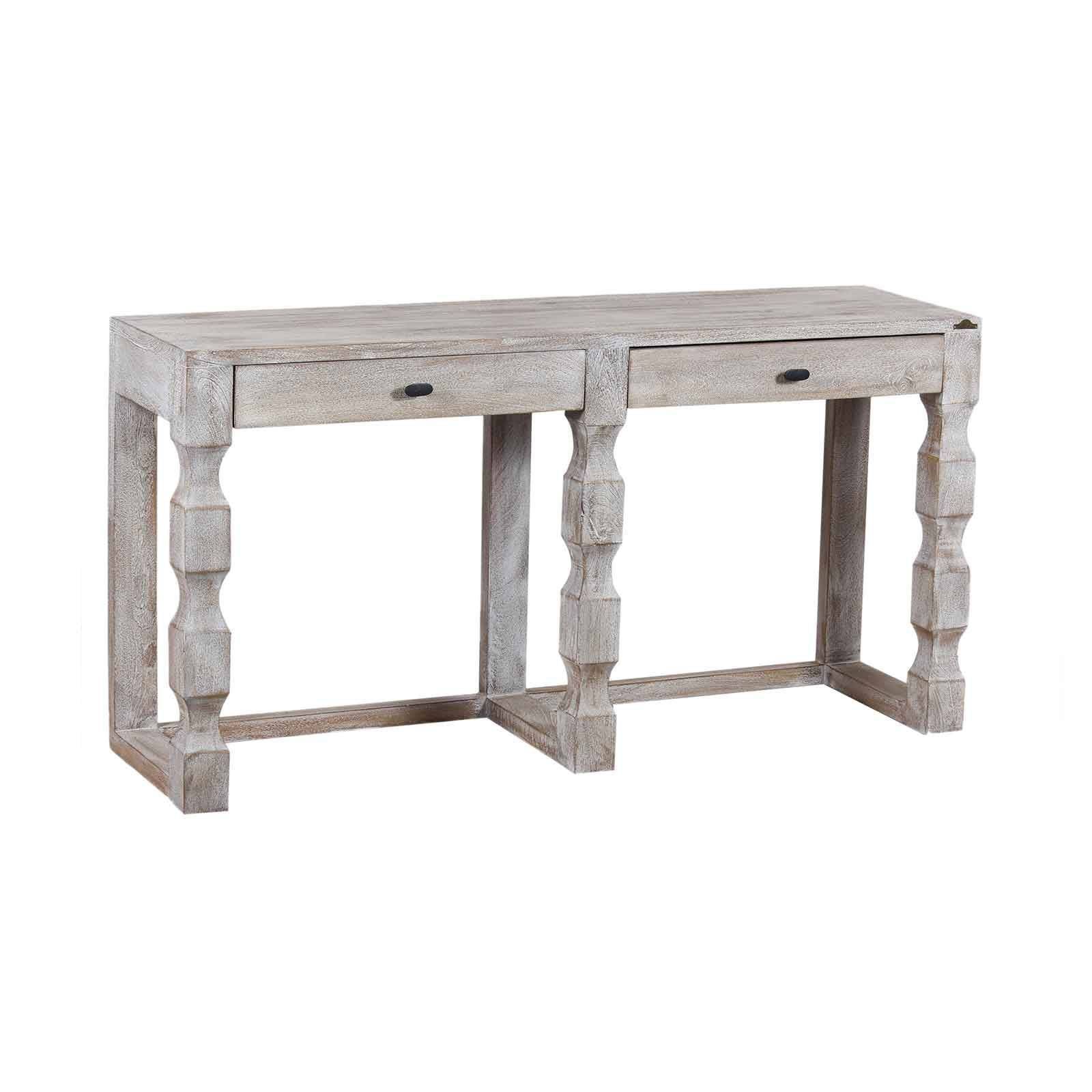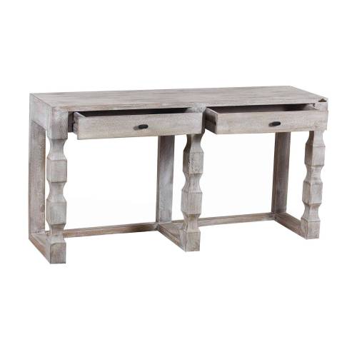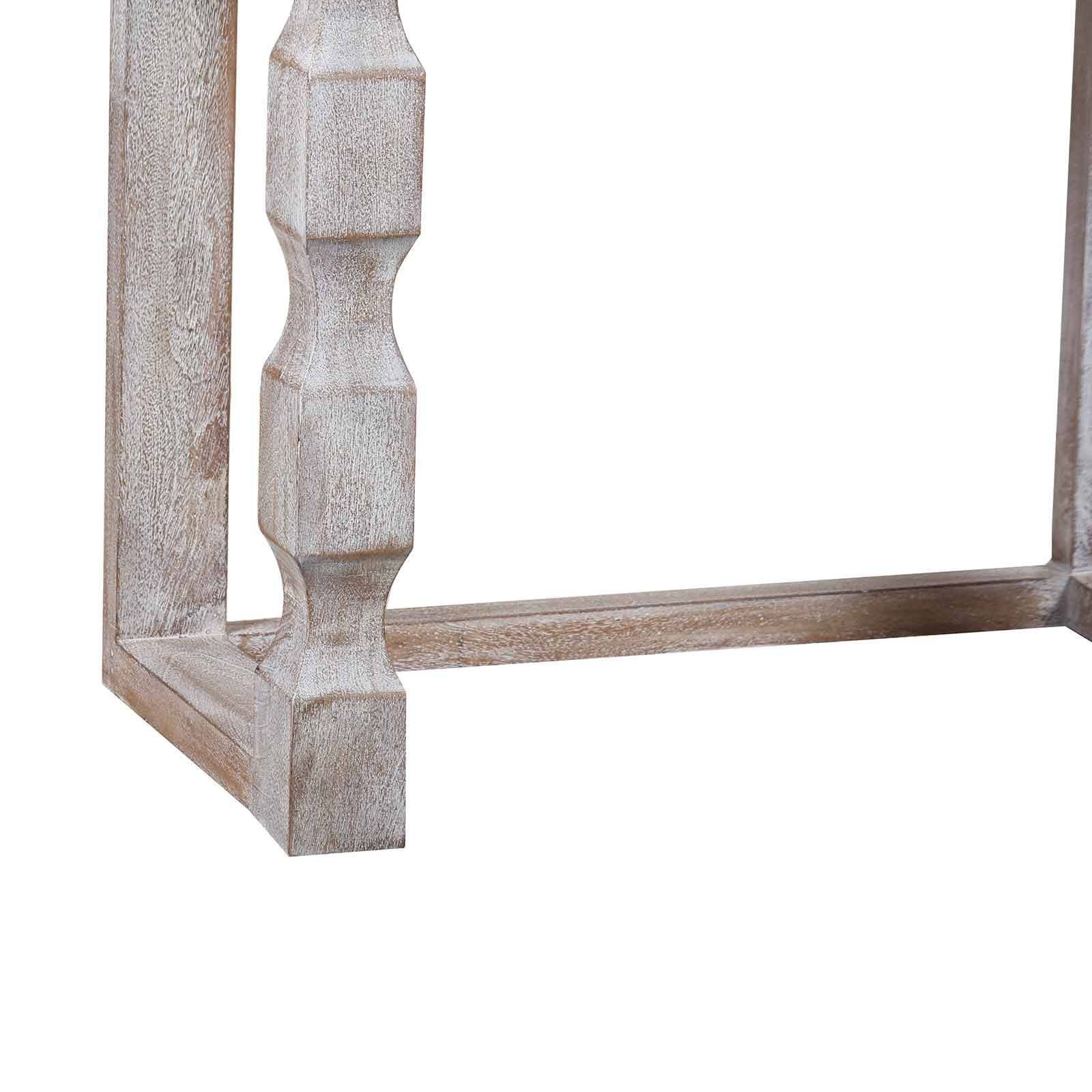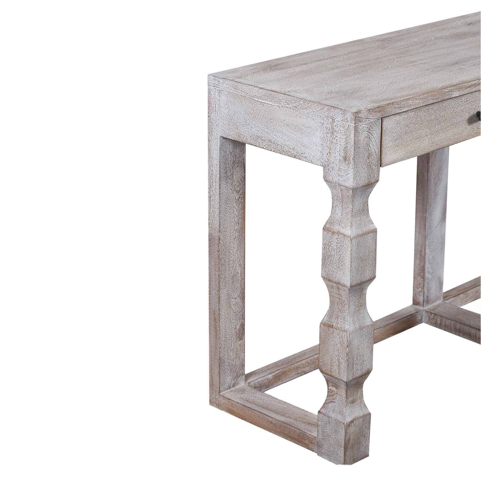 La grande console bois Hampton est fabriquée en manguier massif avec une finition blanc vieilli qui lui confère une patine délicate.