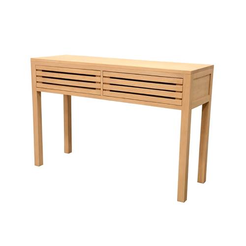 Une console est un meuble décoratif idéal pour aller dans une entrée. Non seulement elle servira à y installer des objets déco pour donner vie à votre entrée, mais en plus elle vous permettra de ranger vos clefs, vos papiers et ainsi vider vos poches en rentrant chez vous. Cette grande console en bois massif Miami possède deux tiroirs qui sont des espaces de rangement discrets et astucieux.