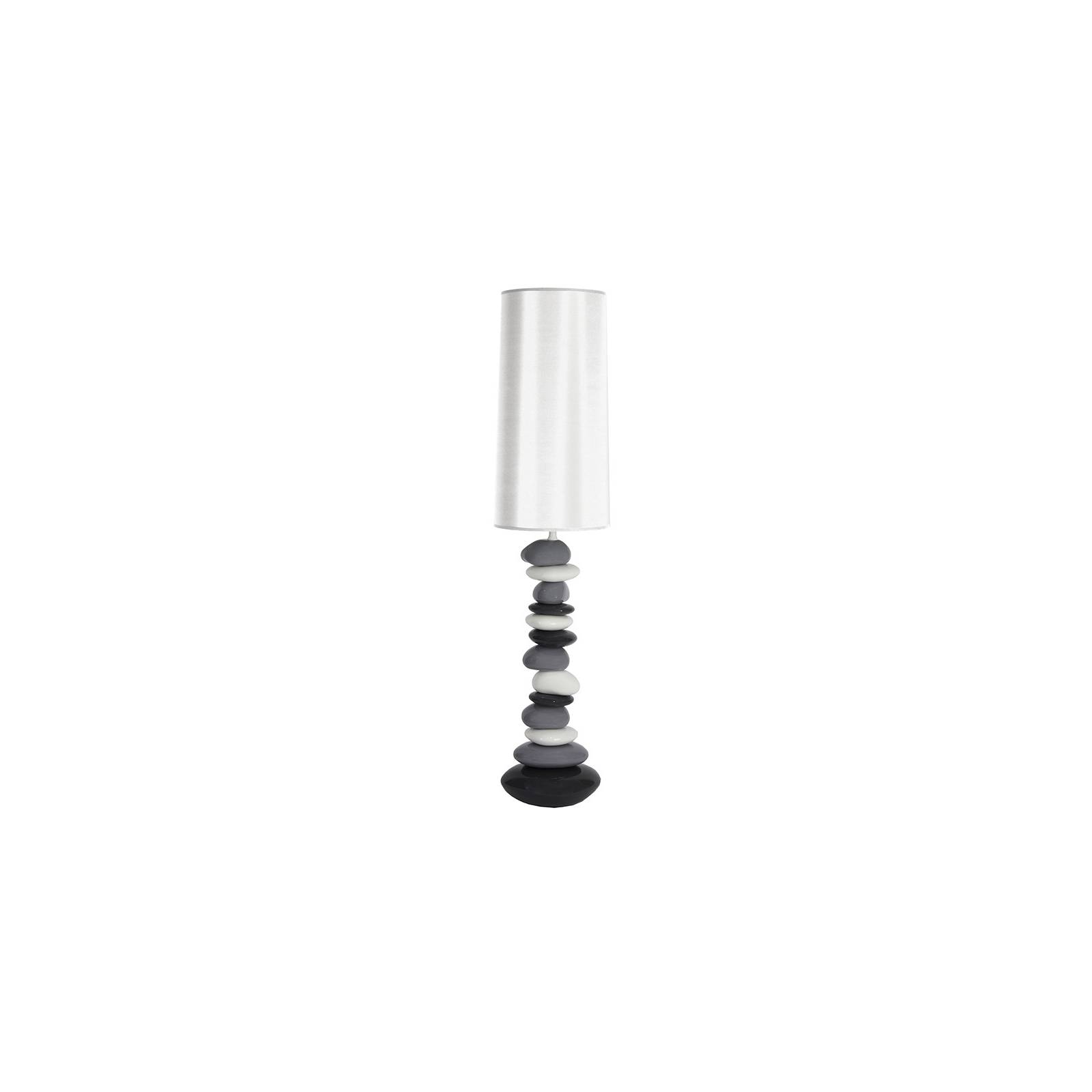 Les galets sont mis à l'honneur dans cette superbe lampe, qui tire son originalité de son pied, constitué de galets de céramiques rythmés par des couleurs neutres, qui sont empilés de façon déstructurée. Moderne de part ses formes, cette lampe pourra également être associée à une pièce au mobilier plus traditionnel, auquel elle donnera une note tendance. A la fois objet de décoration et objet pratique, cette lampe trouvera à coup sûr une place dans votre intérieur.
