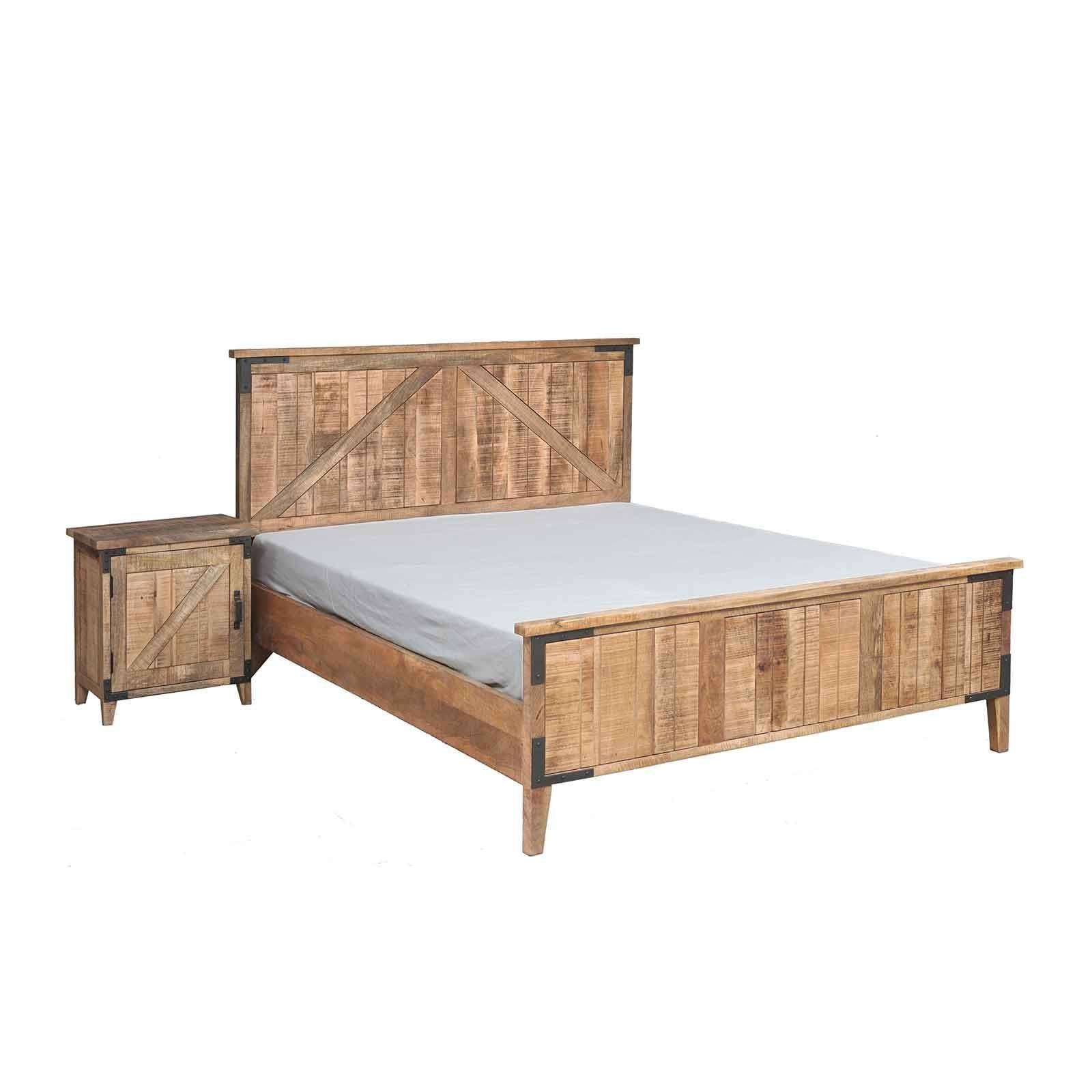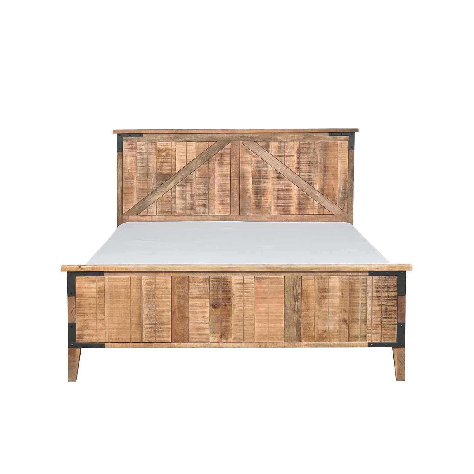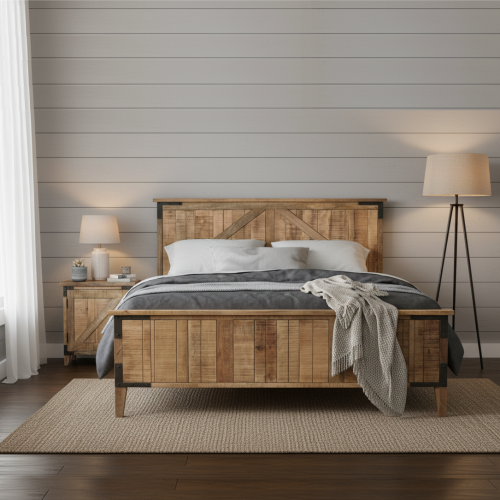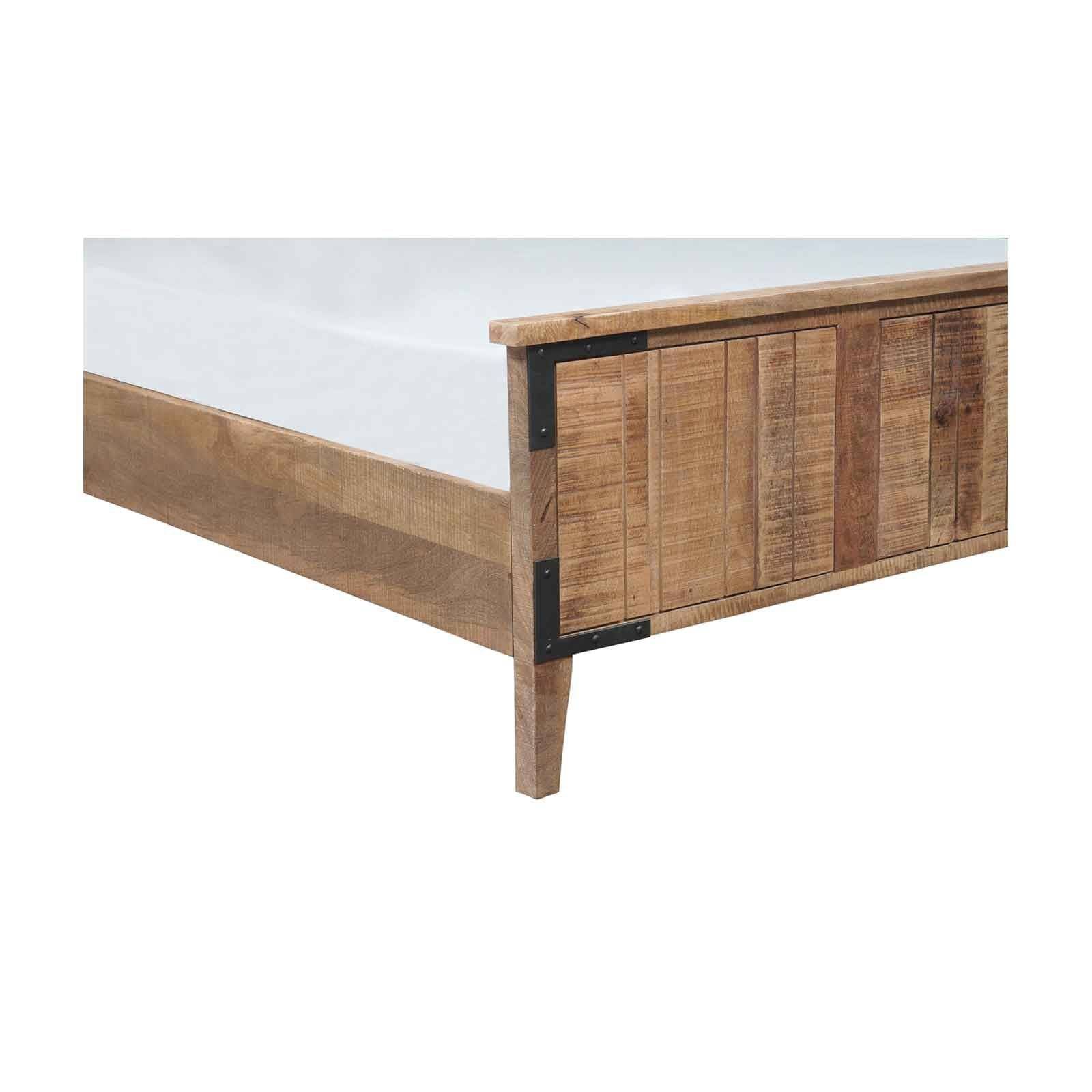 Le lit bois brut de la collection Manguier Brut incarne une élégance organique, alliant la solidité du manguier massif à la modernité du MDF.