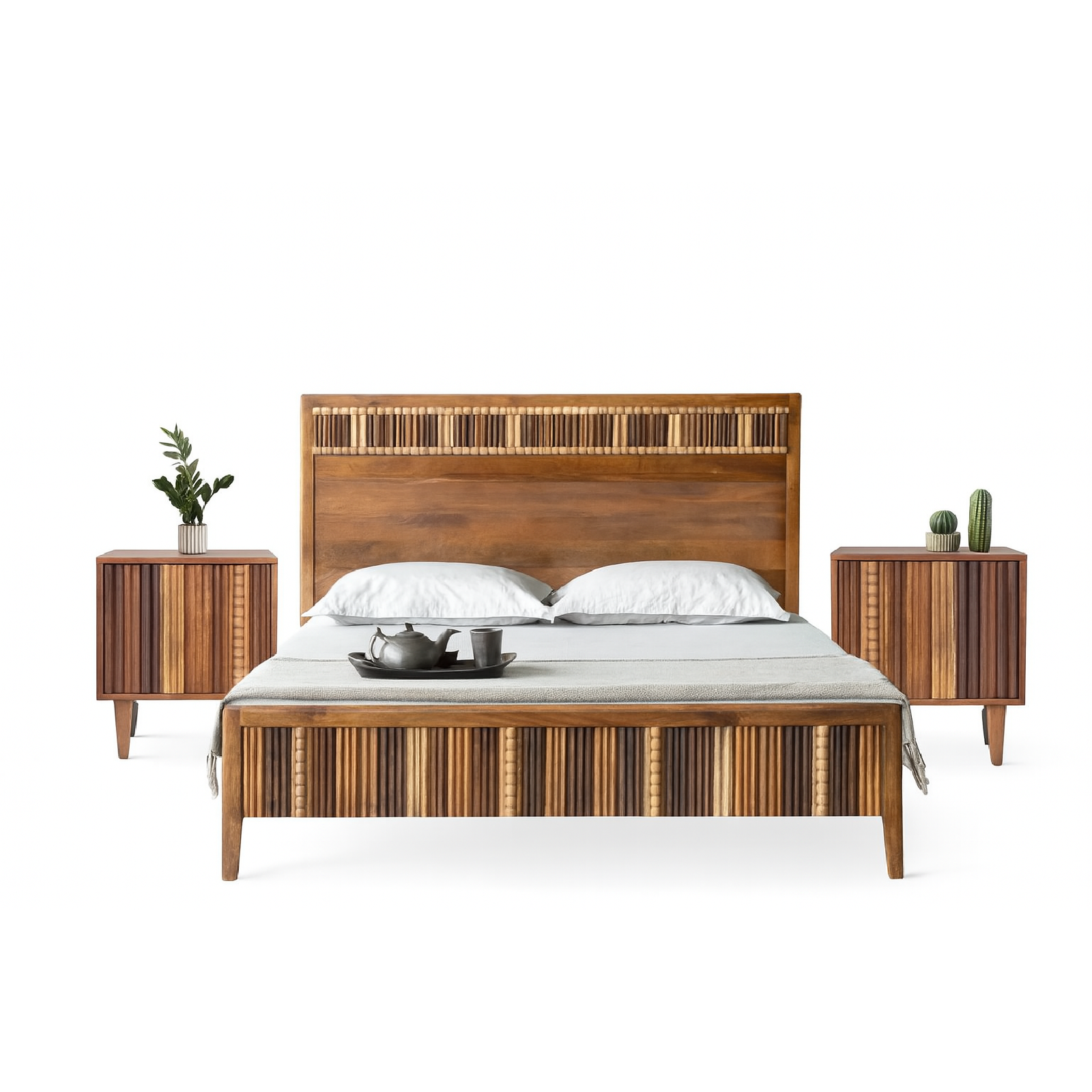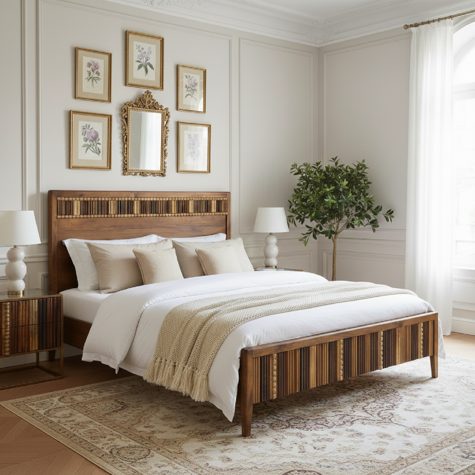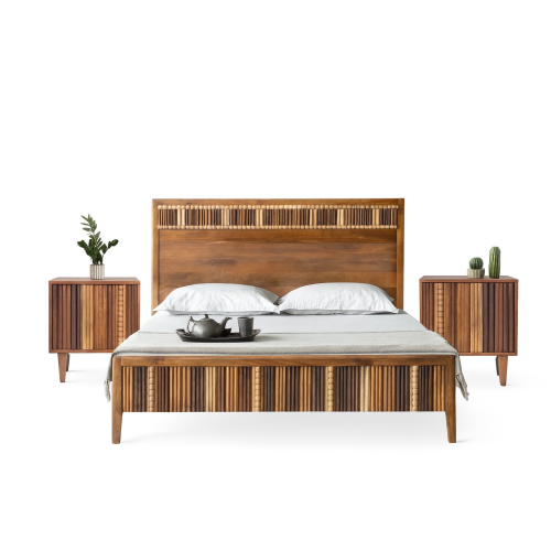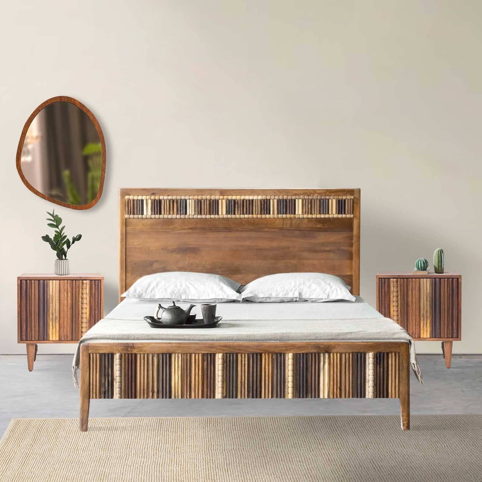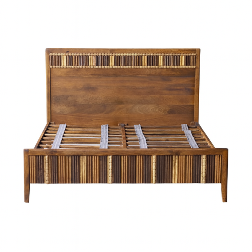 Lit en bois de manguier avec tête de lit sculptée | Manguier Ramon - Une touche d'élégance et de confort pour votre chambre.