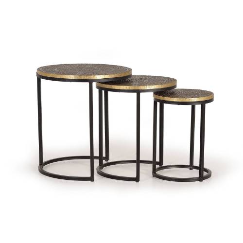 Découvrez ce lot de 3 tables basses gigognes en fer forgé et bronze. Des matériaux de qualité originaux pour ce meuble déco au style industriel prononcé.