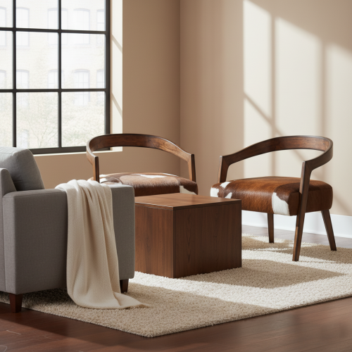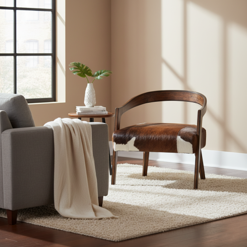 Matador Cowhide Armchair – Rustic Elegance with Wooden Frame
