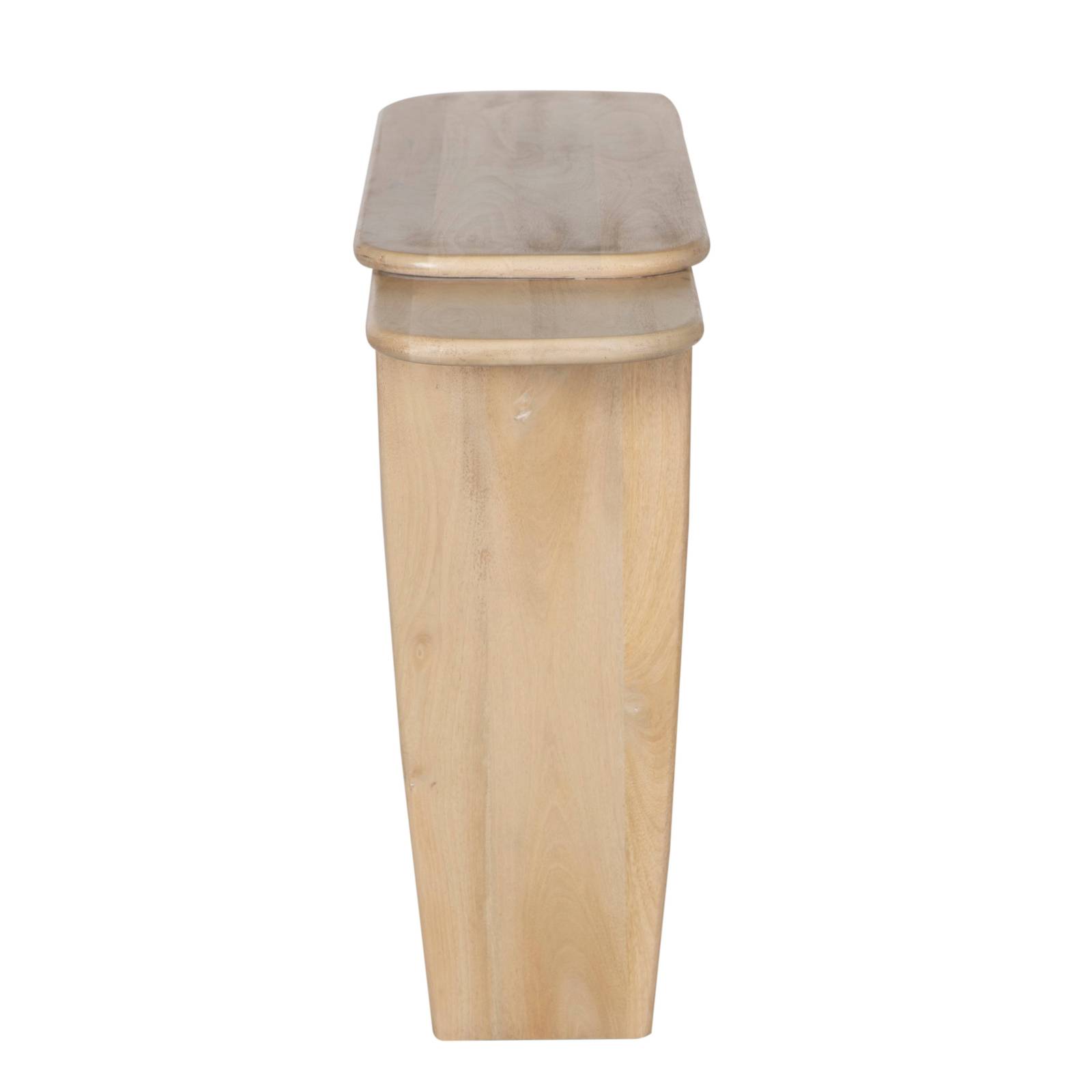 Équilibrant parfaitement forme sculpturale et fonctionnalité quotidienne, cette console de la collection Element est une pièce raffinée pour les intérieurs modernes. Fabriquée avec soin en bois de manguier massif et dotée d’une finition en frêne naturel doux, elle met en valeur la chaleur et la texture du grain du bois tout en affichant une esthétique contemporaine et épurée.