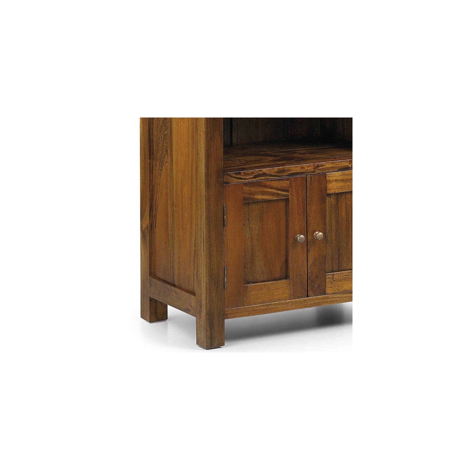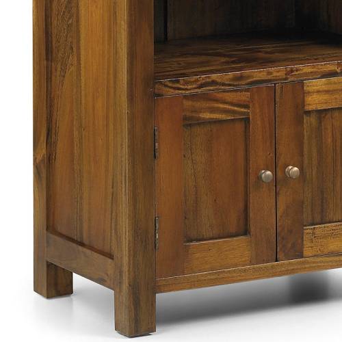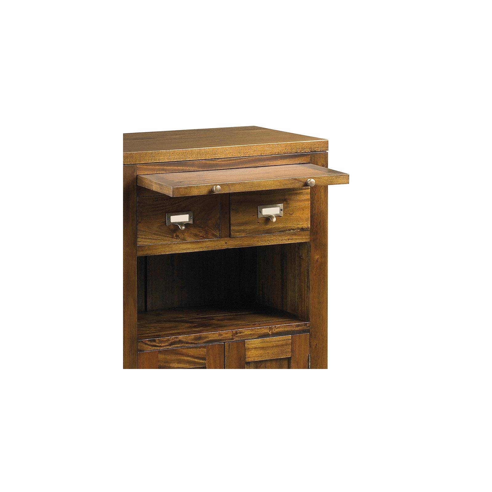 Vous cherchez un petit meuble de rangement ? Ce modèle colonial devrait vous plaire avec ses poignées en laiton vieilli et son bois exotique.