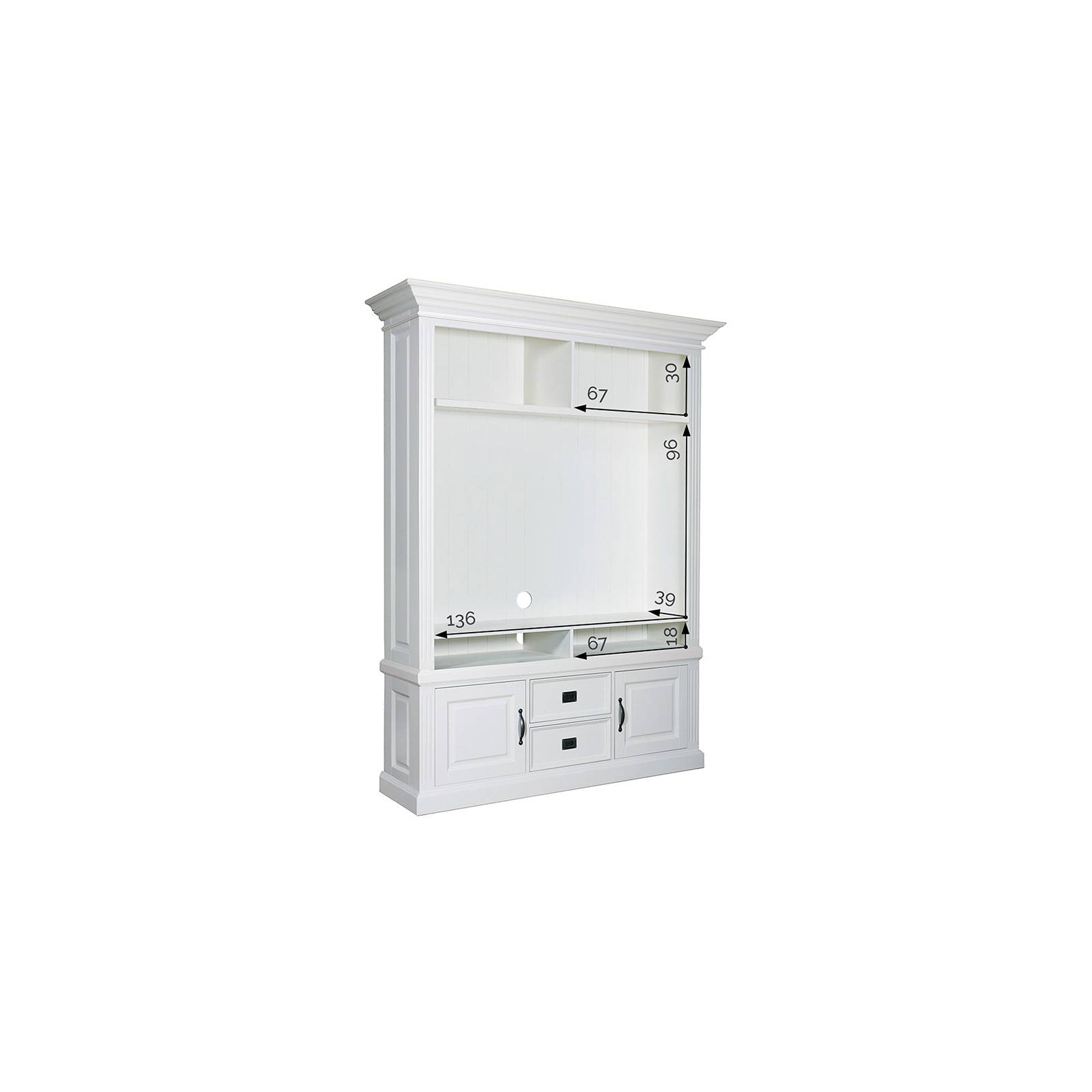 Assouvissez votre passion pour le septième art avec ce grand meuble mural TV blanc en bois de pin. Empreint d'allure et de romantisme, il complétera votre intérieur d'esprit maison de campagne chic.