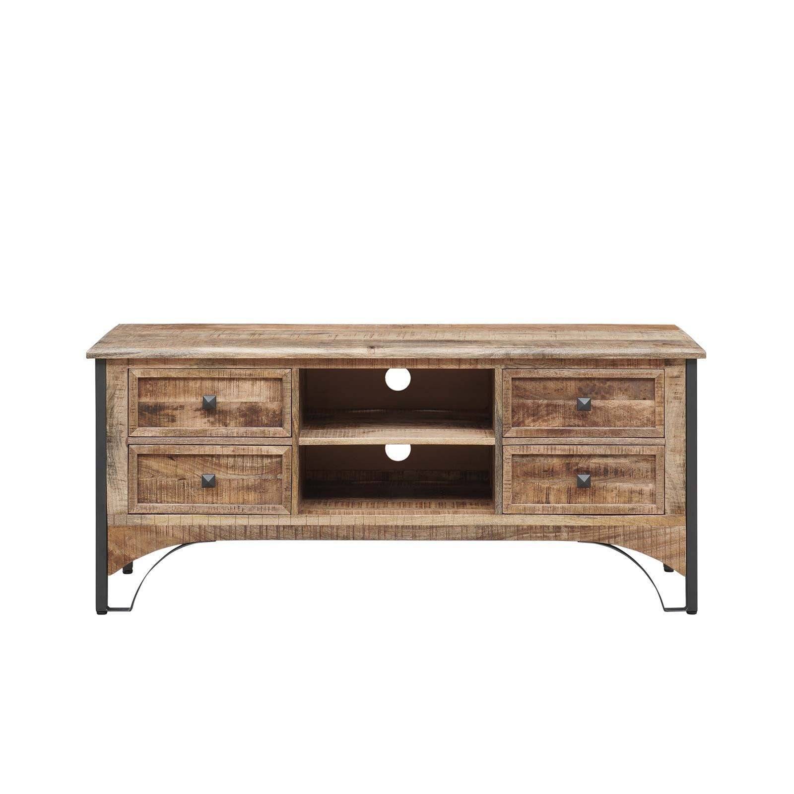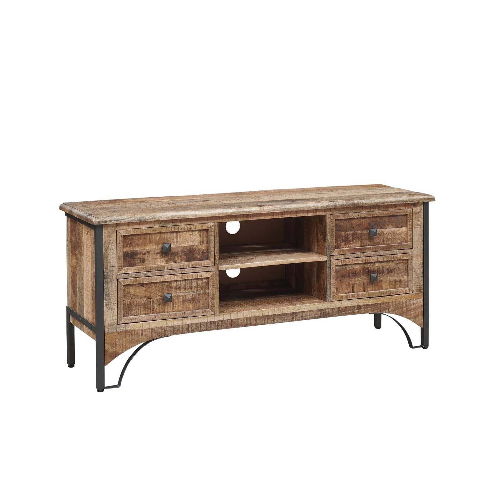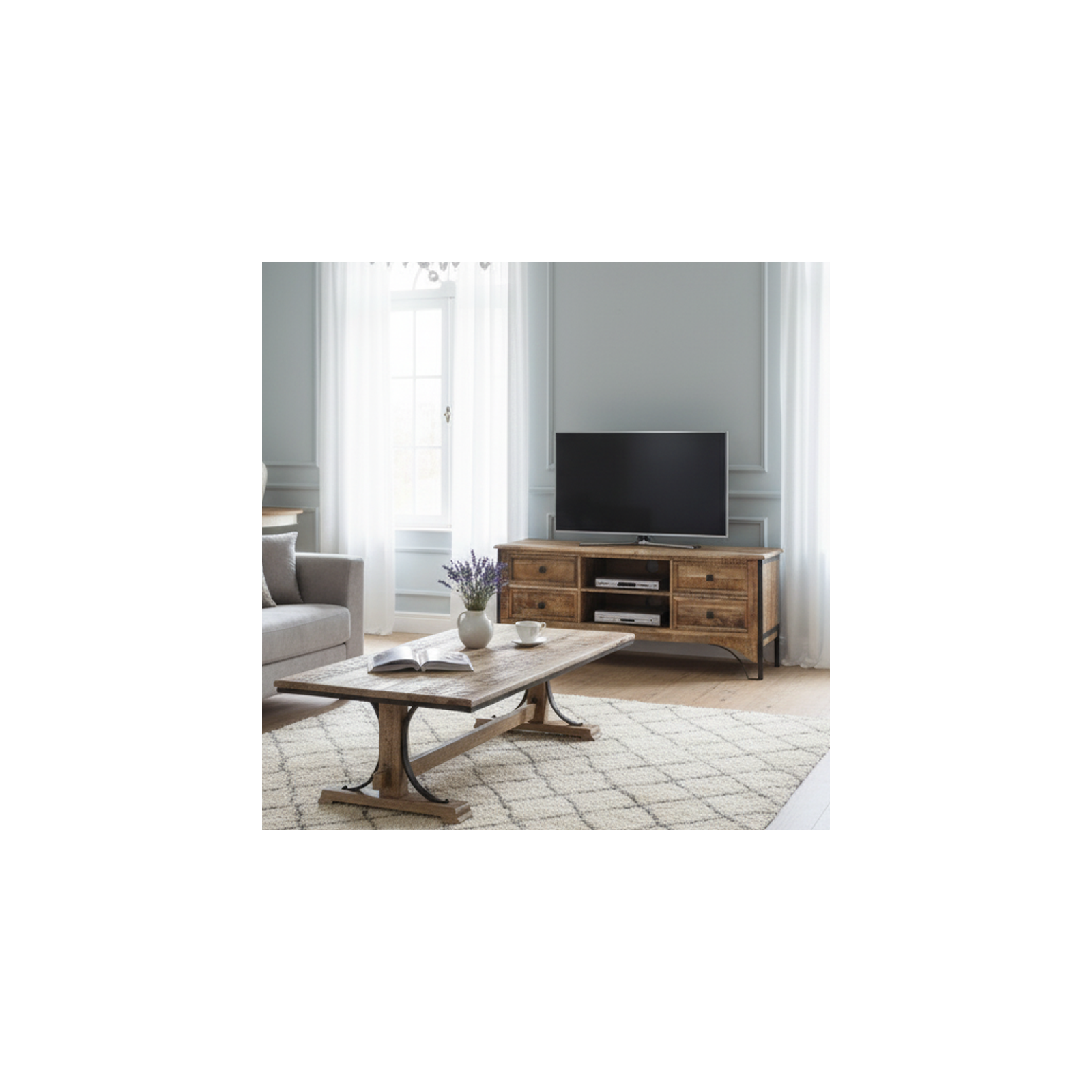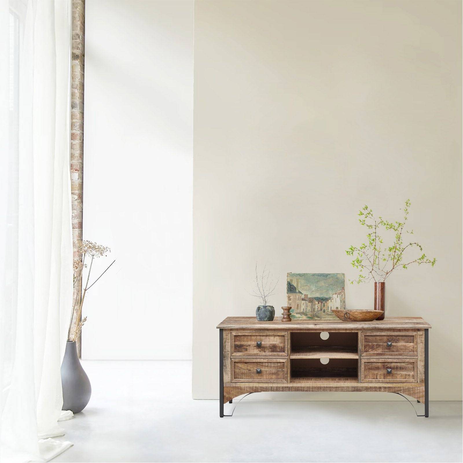 Le meuble TV 2 niches 4 tiroirs est l'alliance parfaite entre l'esthétique moderne et la fonctionnalité. En manguier massif, il est d'une qualité exceptionnelle.
