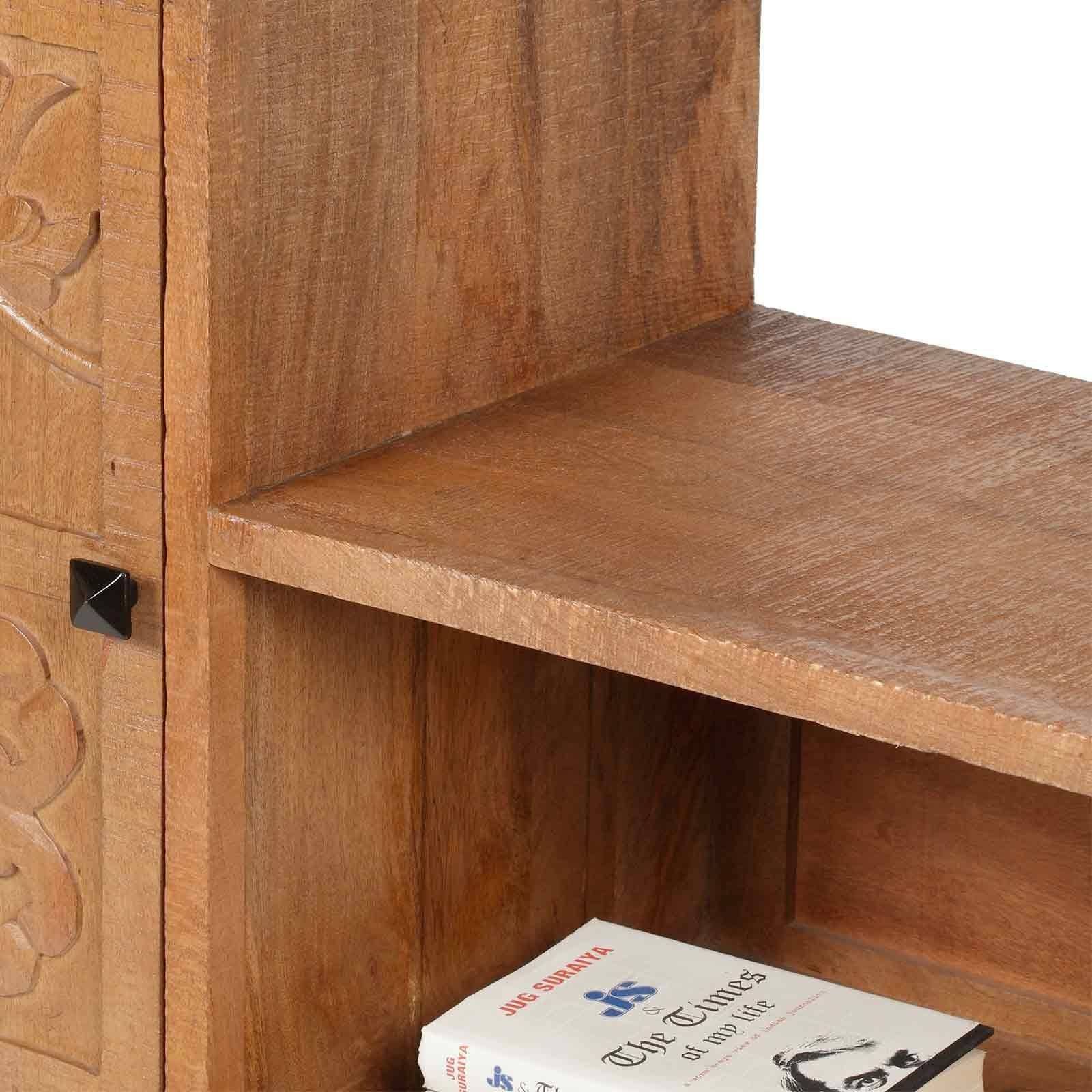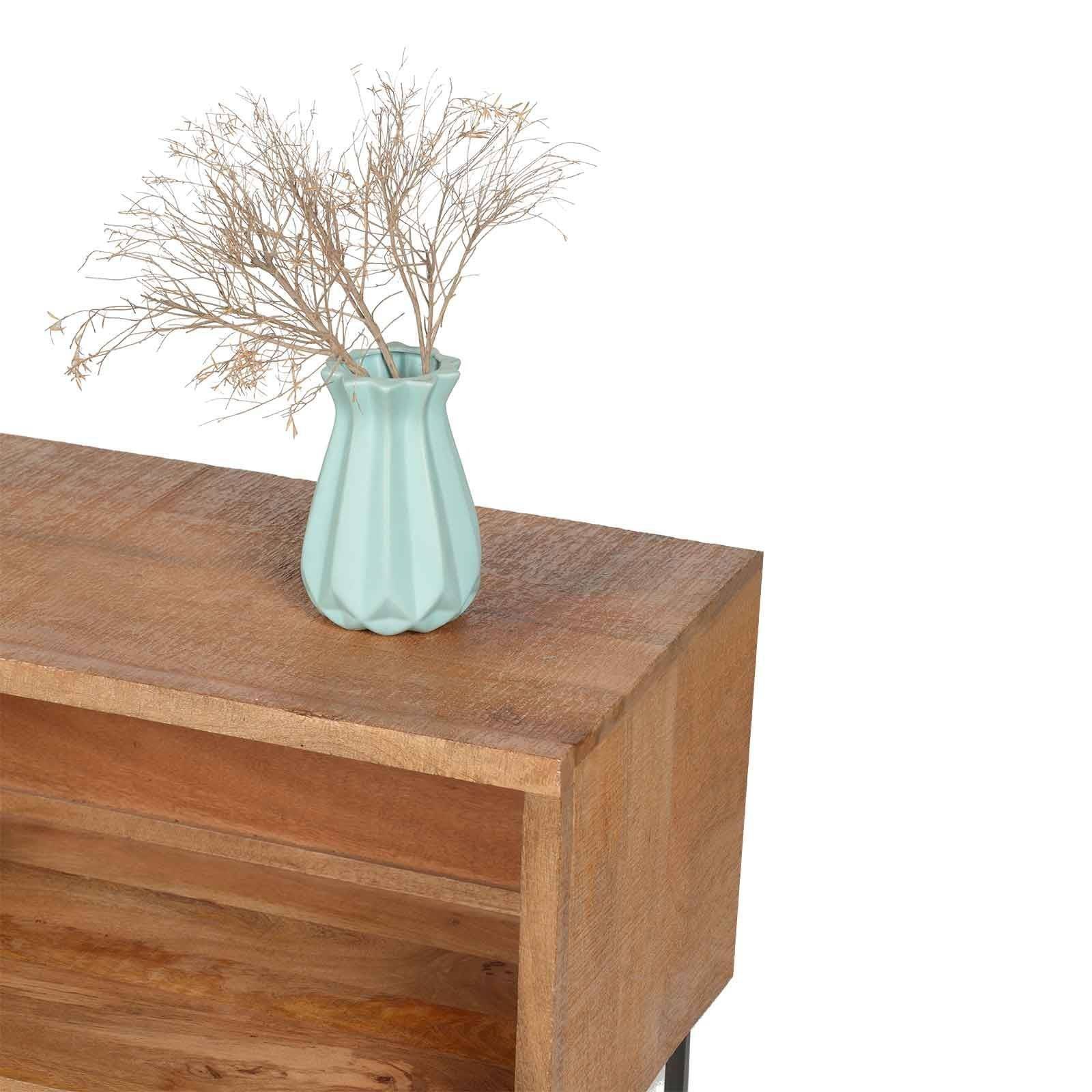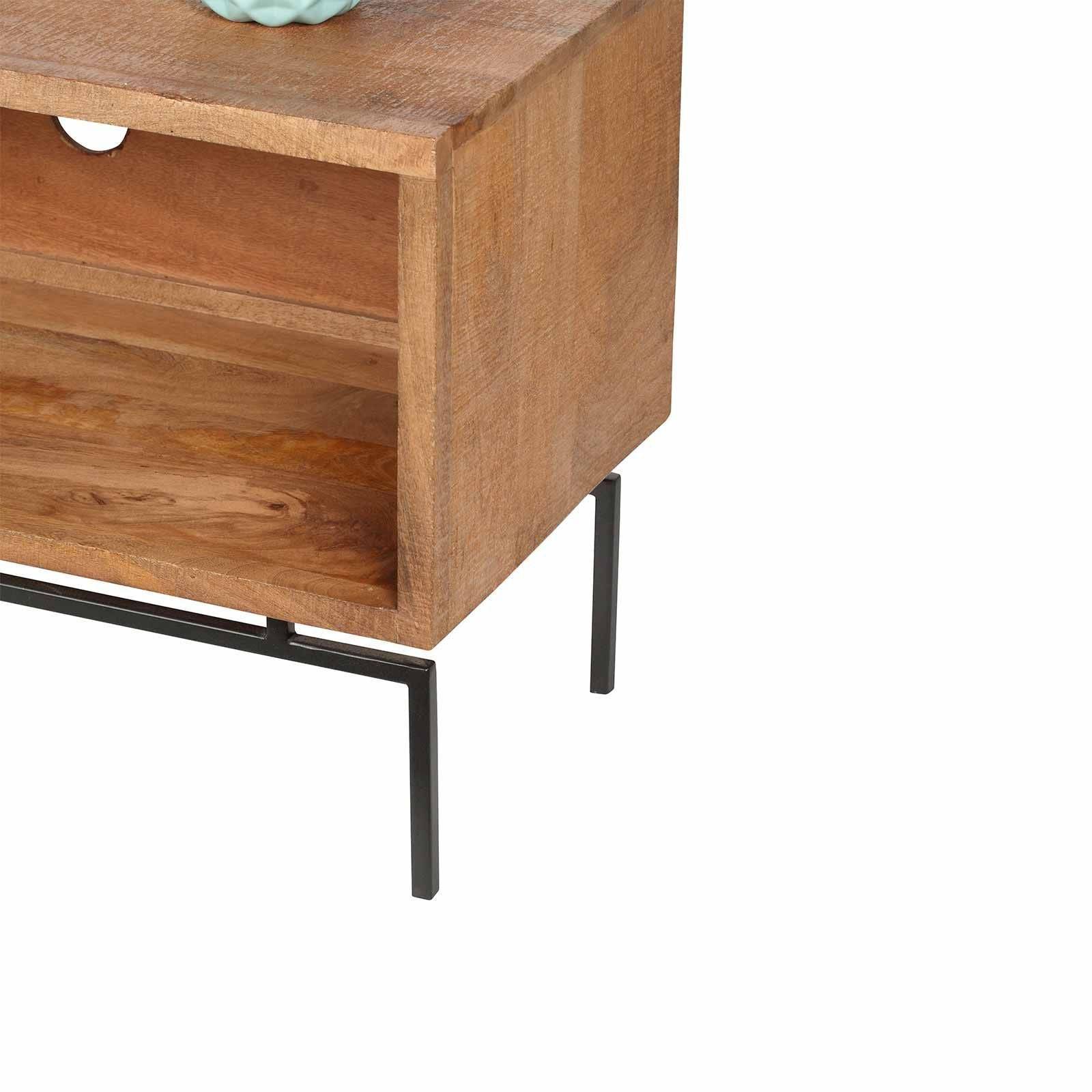 La structure robuste en bois massif de manguier, offre non seulement une solidité remarquable, mais aussi une esthétique naturelle qui apporte chaleur et caractère à votre espace de divertissement. La couleur naturelle met en valeur la beauté authentique du bois, créant une atmosphère accueillante dans votre pièce. Avec une porte et une étagère ouverte, ce meuble TV propose un agencement innovant et dynamique pour vos équipements multimédias et vos éléments de décoration. La porte asymétrique ajoute une touche de modernité, tandis que l'étagère ouverte offre un espace pour exposer vos appareils électroniques ou vos livres préférés de manière élégante et accessible.