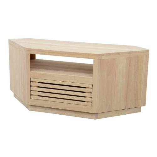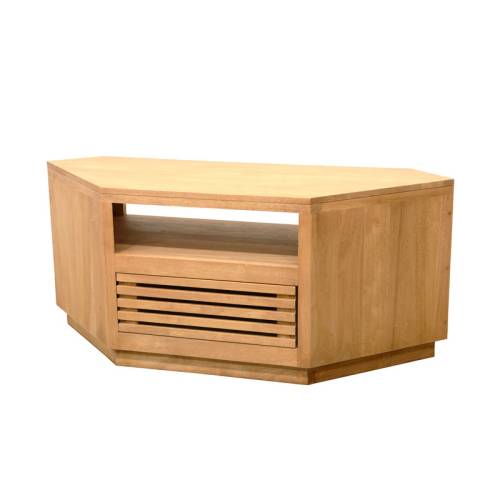 On adore la forme originale de ce meuble Tv d'angle design de la gamme Miami ! Composé de bois exotique massif, il s'agit d'un produit haut de gamme et écologique, disponible dans plusieurs coloris pour s'accorder à la déco de votre salon.