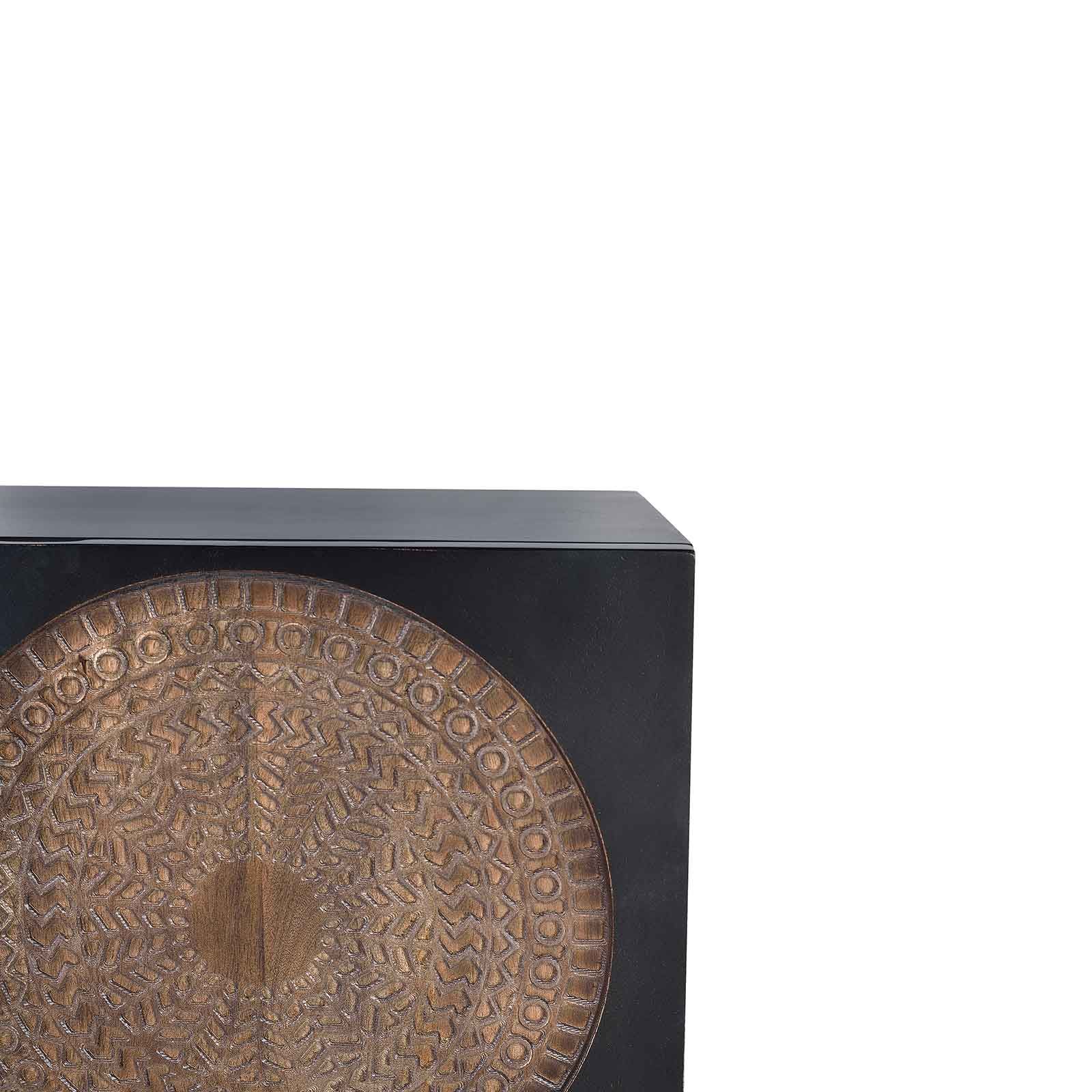 Cette pièce de la collection Manguier Sculpture incarne l'essence même de l'artisanat indien traditionnel avec son manguier bicolore finement sculpté. Chaque détail de ce meuble TV est une œuvre d'art en soi, avec des motifs sculptés à la main qui évoquent le riche patrimoine culturel de l'Inde. Le bois de manguier massif est un choix parfait pour ce meuble, apportant à la fois une robustesse exceptionnelle et une beauté naturelle. Le grain du bois est mis en valeur par une finition bicolore qui accentue les contrastes, ajoutant une dimension visuelle fascinante.