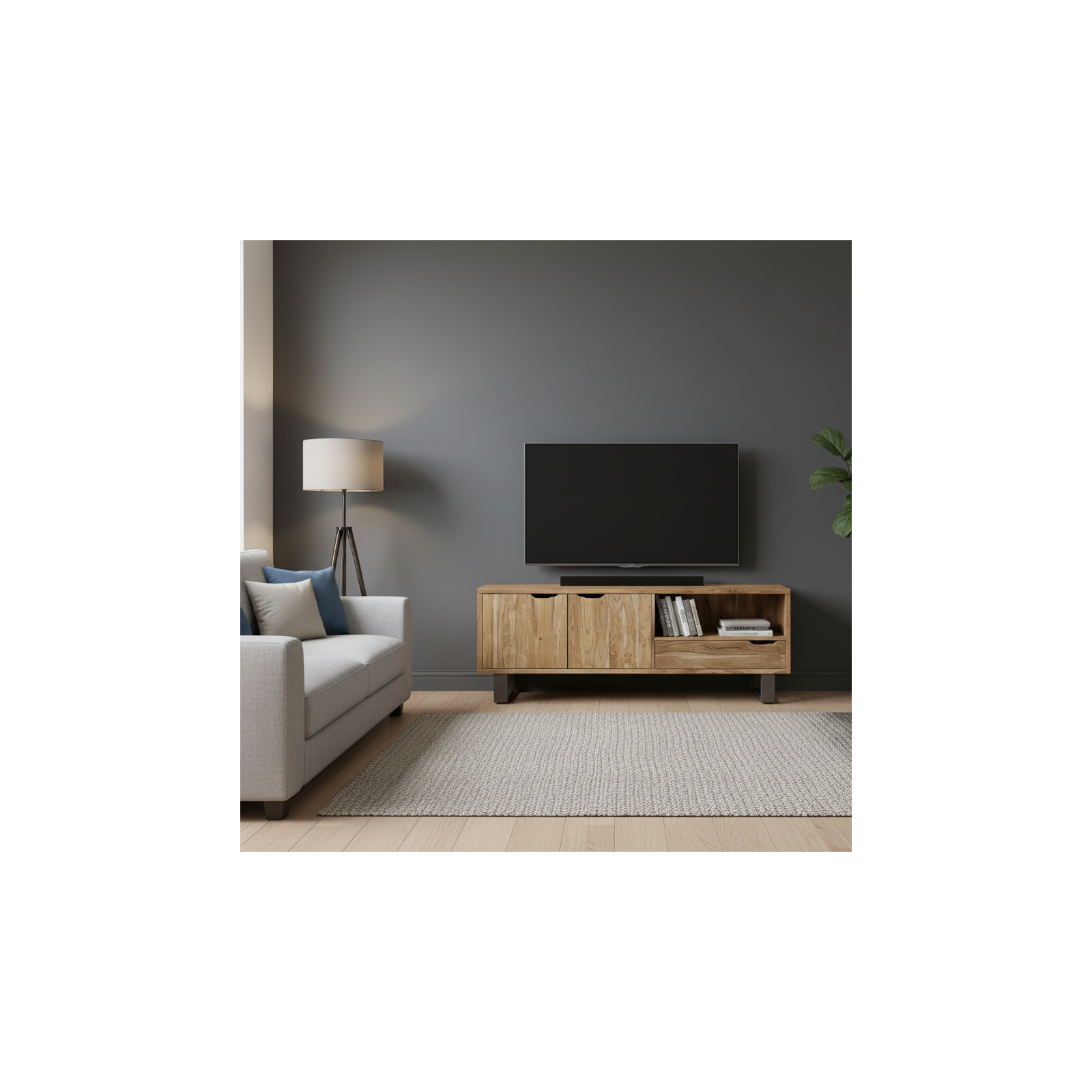 Le meuble TV industriel bois brut contribuera à l'ambiance cocooning de votre intérieur. A mi-chemin entre esprit nature et style industriel, son design, à la fois élégant et authentique, lui confère une personnalité atypique qui attirera tous les regards.