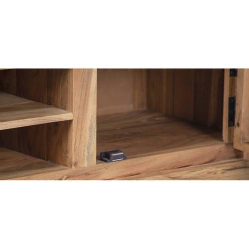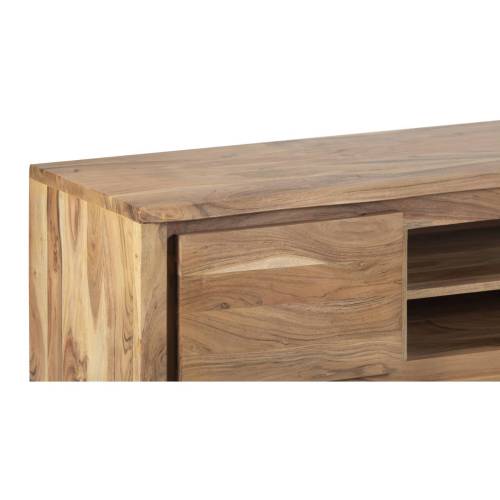 Le meuble TV moderne fabriqué en acacia massif incarne la beauté naturelle du bois, offrant une élégance intemporelle et exotique à votre salon.
