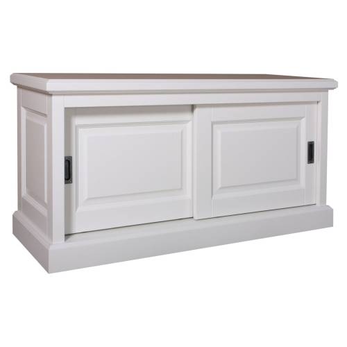 En quête d'un meuble TV porte coulissante en bois blanc combinant l'élégance du style classique au confort des meubles d'aujourd'hui ? Découvrez ce modèle à la fois chic et fonctionnel, idéal pour votre intérieur maison de campagne.