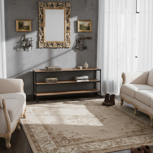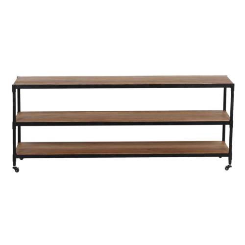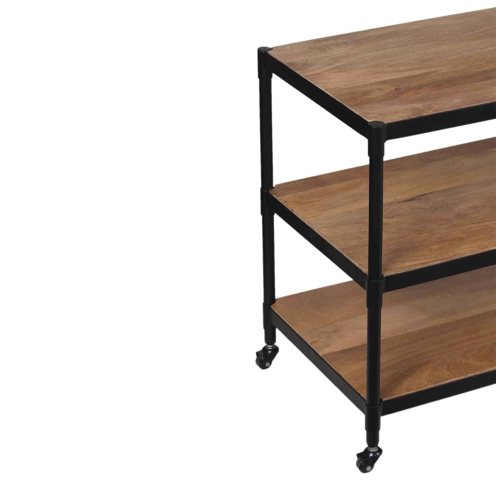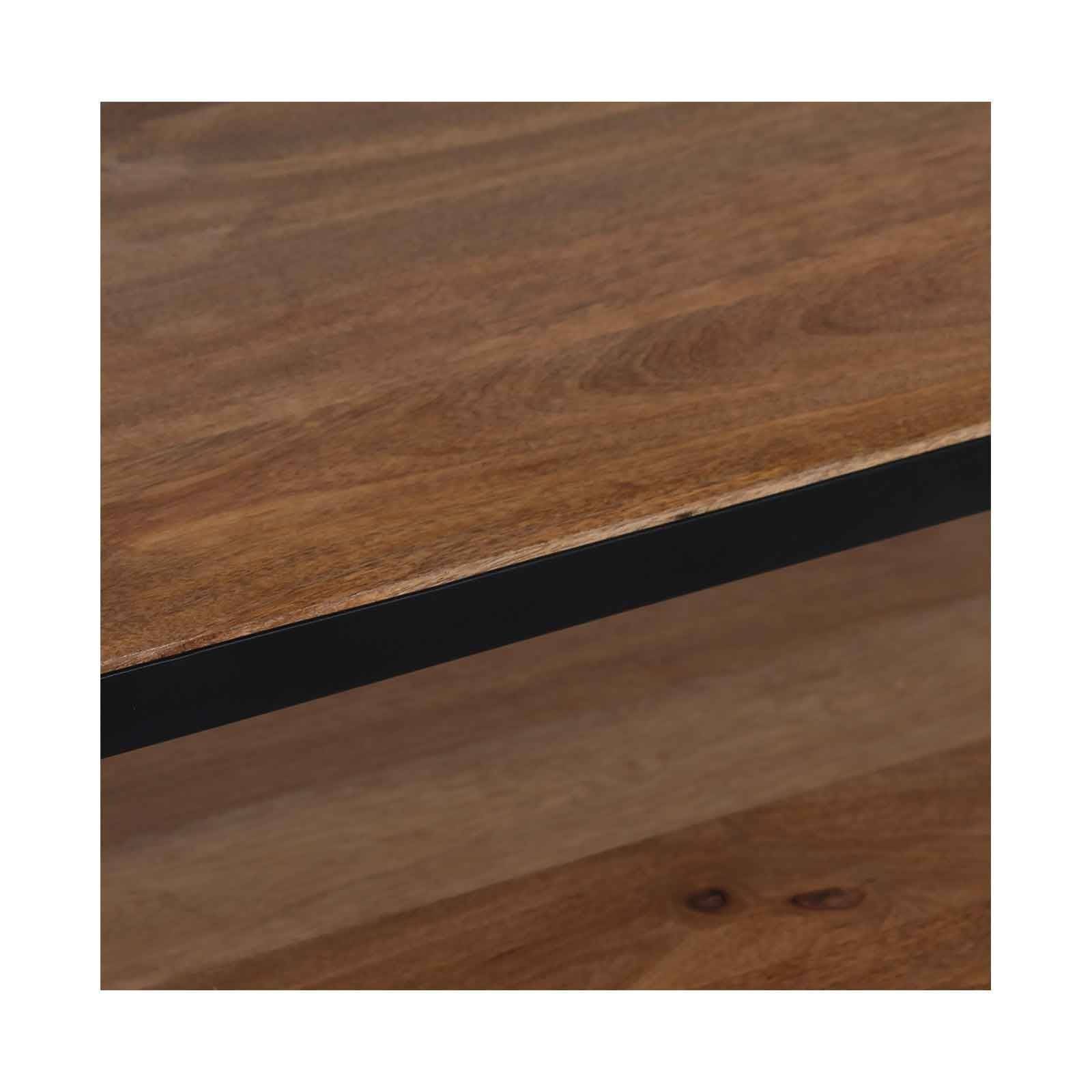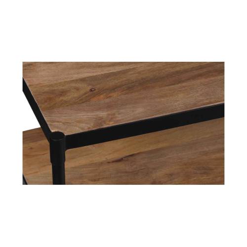 Conçu pour apporter une touche de modernité à votre salon, ce meuble incarne le mariage harmonieux de matériaux de haute qualité. La structure en métal de 20 mm, soigneusement peinte à la main avec une finition noire antique, confère au meuble une allure raffinée et industrielle. Chaque détail poli reflète l'artisanat exceptionnel qui a été investi dans sa conception, assurant une esthétique irréprochable. Les étagères en manguier massif de 25 mm, dotées d'une finition naturelle vernis polyuréthane, ajoutent une chaleur naturelle à l'ensemble. Le grain distinctif du manguier confère un charme authentique à chaque plateau, créant ainsi un contraste visuel saisissant avec le métal noir.
