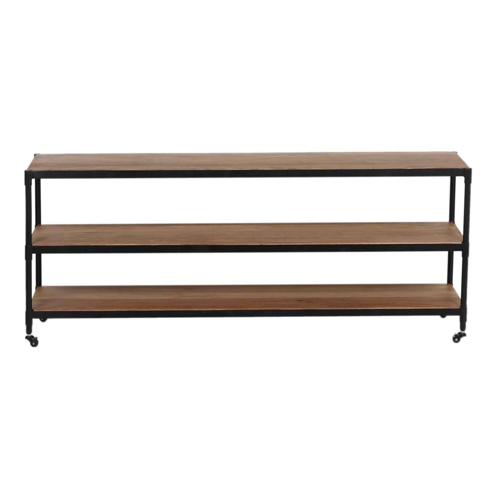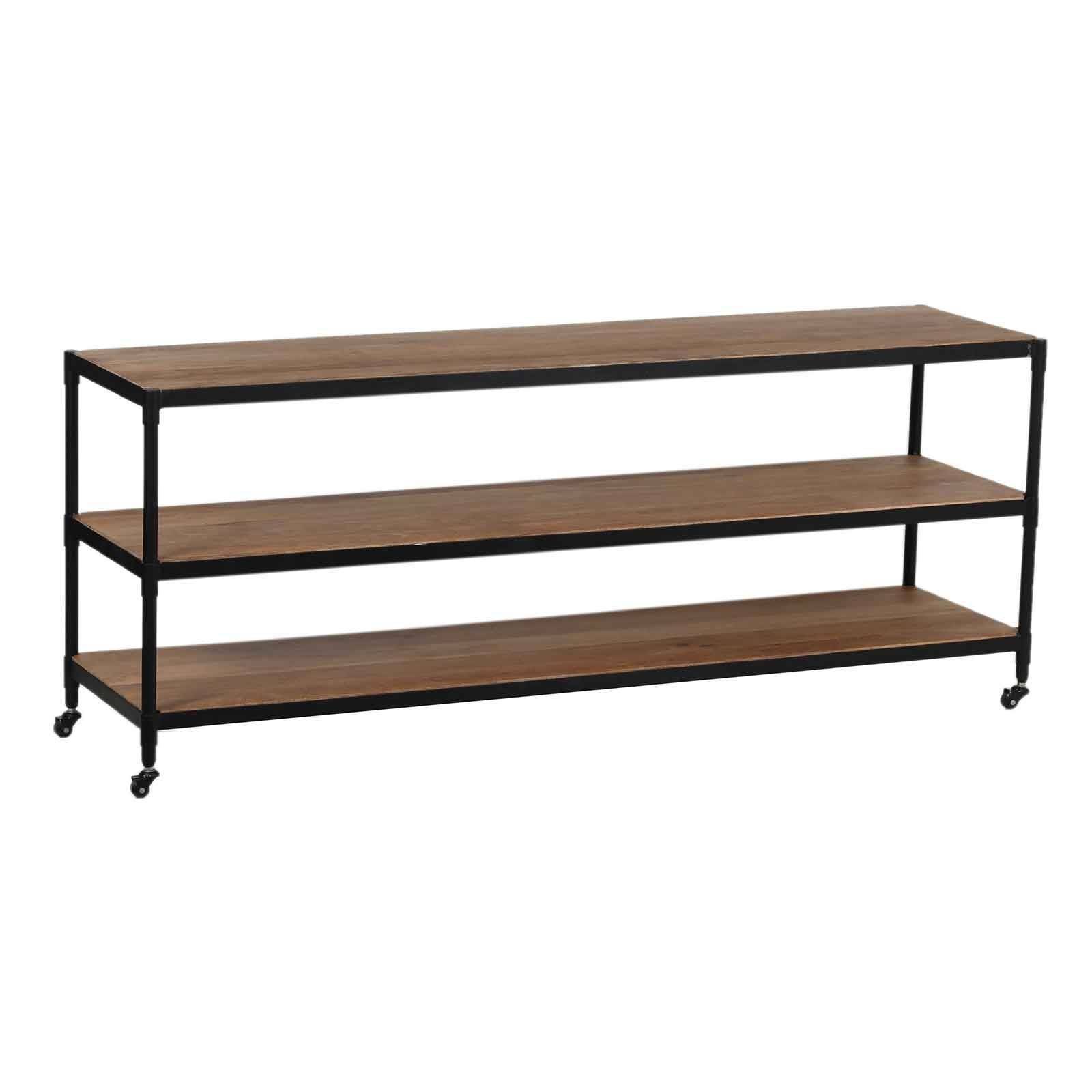Découvrez l'élégance fonctionnelle du meuble TV triple plateau de la collection Manguier Quiberon, conçu avec soin en manguier massif et métal.