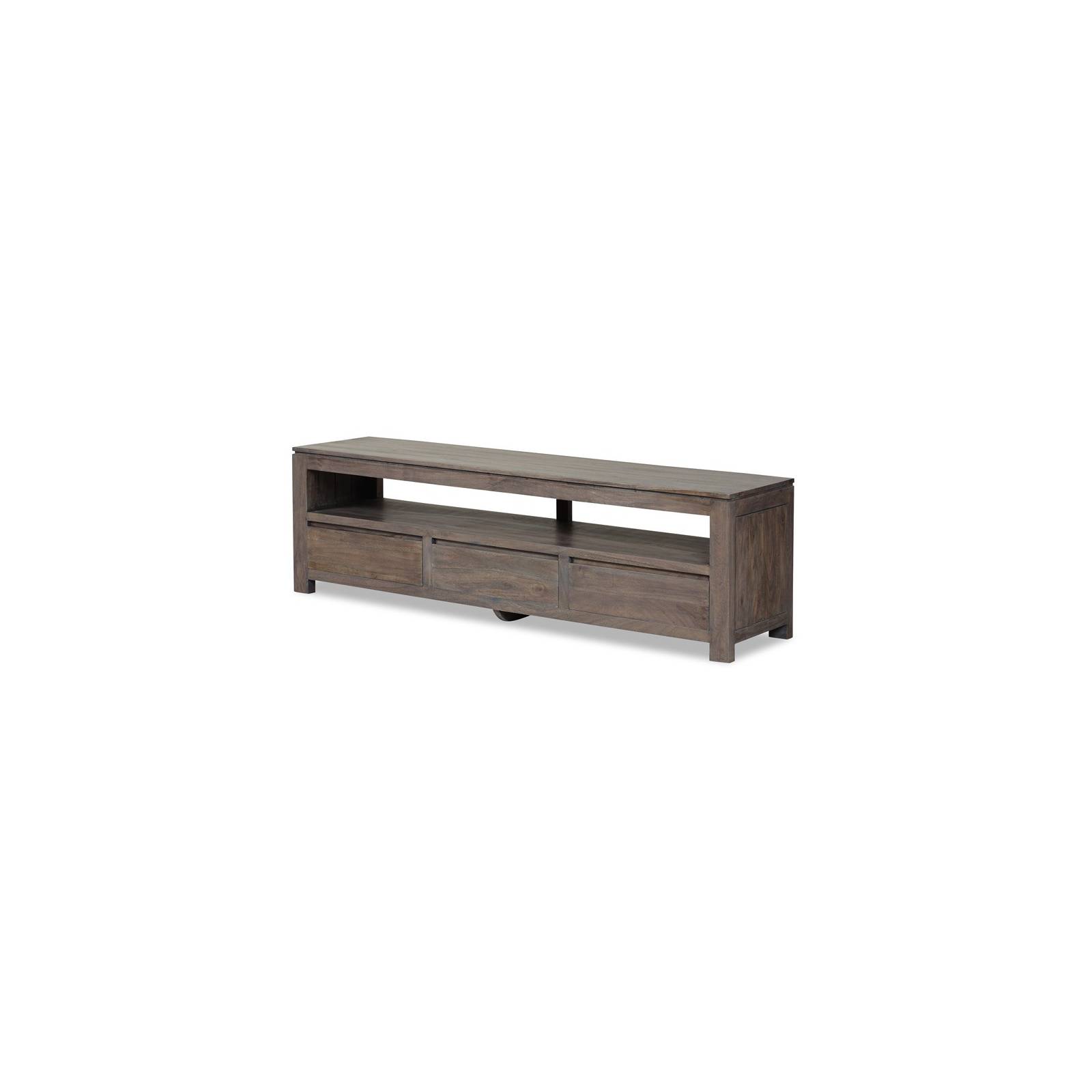 Les dimensions conséquentes de ce grand meuble Tv en font une source de rangement idéale, avec ses trois tiroirs pour y glisser DVDs et magasines, et une grande niche pour vos appareils multimédia. La sobriété due à sa délicate couleur grise est réhaussée par son veinage nuancé à l'accent ethnique, pour un résultat ethnique design, qui apportera une touche moderne à votre intérieur. Vous ne vous lasserez pas de ce meuble Tv, qui ira à merveille avec la table basse issue de la même collection.