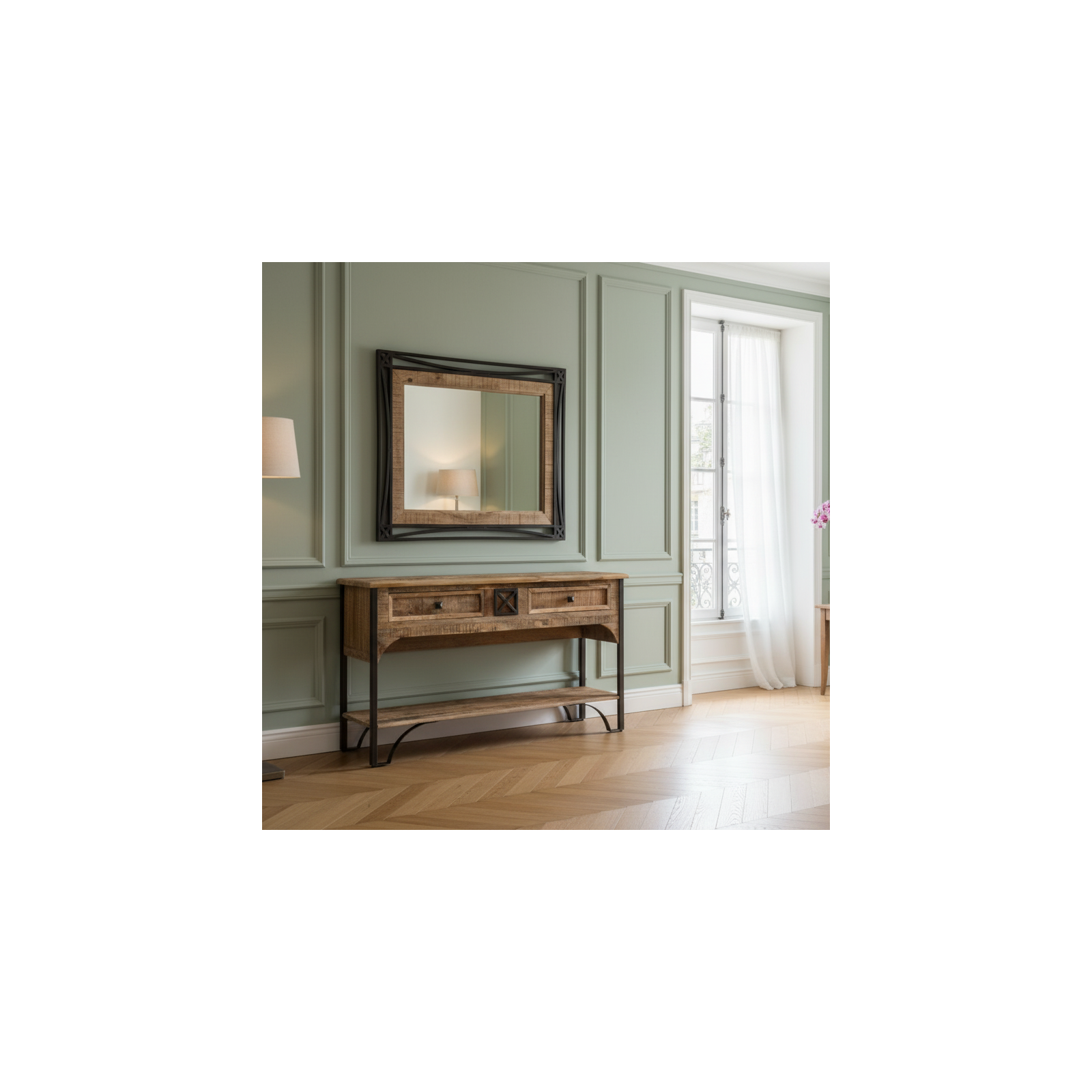 Le miroir exotique allie l'élégance classique à une touche d'exotisme, créant une pièce de décoration unique et raffinée en manguier massif et métal.
