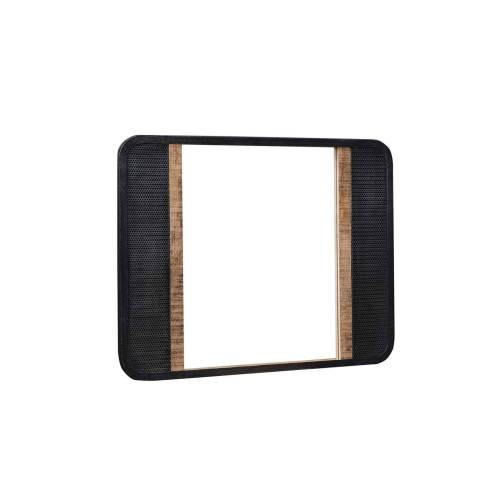 Conçu avec soin à partir de manguier massif, MDF et métal, ce miroir constitue un élément déco qui allie l'authenticité du bois à des éléments modernes. Encadré par une structure métallique, le miroir offre un contraste visuel captivant entre le noir industriel et la teinte brun/miel du bois de manguier massif. Les panneaux en MDF soutiennent le manguier massif, créant une base solide et durable. La finition nitrocellulosique, appliquée avec précision, protège la surface du miroir tout en mettant en valeur la beauté naturelle du bois de manguier. Chaque détail est ensuite méticuleusement ciré à la main, ajoutant une patine subtile qui souligne les caractéristiques authentiques du matériau.