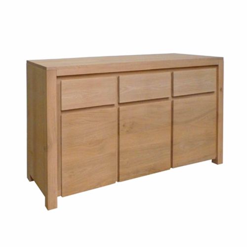 Laissez-vous séduire par ce superbe petit buffet en chêne massif ! Avec sa façade design et son bois massif, il a vraiment tout pour plaire et pourra être intégré à une salle de repas aux dimensions réduites du fait de son relatif faible encombrement. Vous pourrez également vous en servir comme espace de rangement secondaire avec un buffet haut si vous disposez de beaucoup de vaisselle et ainsi composer une salle de repas à l'atmosphère moderne sophistiquée.