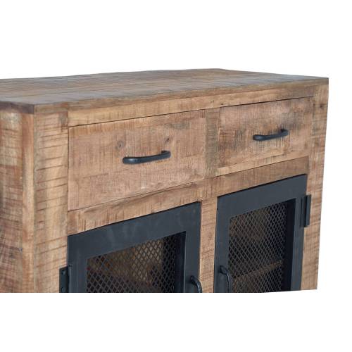 Magnifique petit buffet industriel en manguier massif et fer forgé. Son style unique et original en fera un meuble de rangement idéal pour votre séjour.
