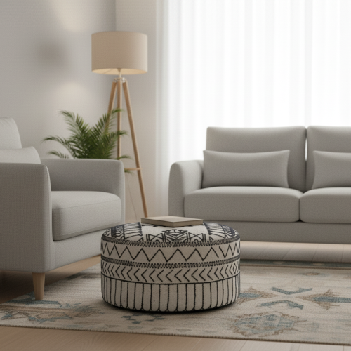 Son design rond et ses motifs tribaux apportent une atmosphère bohème et ethnique à votre espace, créant un point focal artistique. Le pouf tribal de la collection Mix & Match devient ainsi une pièce essentielle pour ceux qui recherchent une alliance unique de matériaux naturels, d'artisanat méticuleux et de design ethnique. Ajoutez cette pièce à votre espace pour une touche de caractère et d'originalité.