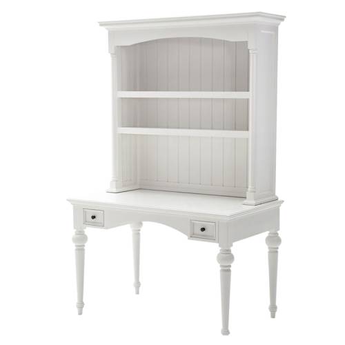 Ce meuble à l'allure classique est un secrétaire, c'est à dire un secretaire bureau vintage qui possède une forme particulière, avec des étagères dans sa partie haute. Faisant office d'espace de travail comme de bibliothèque, ce secrétaire peint en blanc de la gamme Florence a un charme bien à lui. Il s'agit d'un meuble en bois massif, composé d'acajou, un très beau bois exotique.