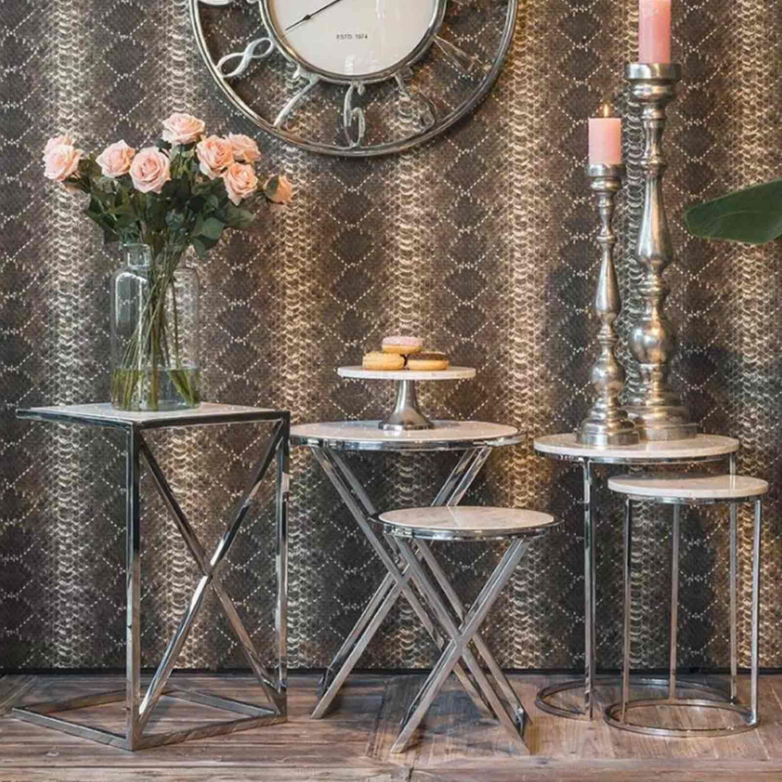 Leur design polyvalent et leur mariage réussi du marbre et du métal les rendent adaptées à une grande variété de styles d'intérieur, qu'il s'agisse de décoration classique, contemporaine ou minimaliste. Avec la collection Marbre Venise, ajoutez une touche d'élégance et de raffinement à votre espace tout en bénéficiant de la praticité des sellettes gigognes. Ces pièces d'ameublement uniques allient esthétique et fonctionnalité, créant ainsi un espace qui respire le charme intemporel et la modernité sophistiquée.