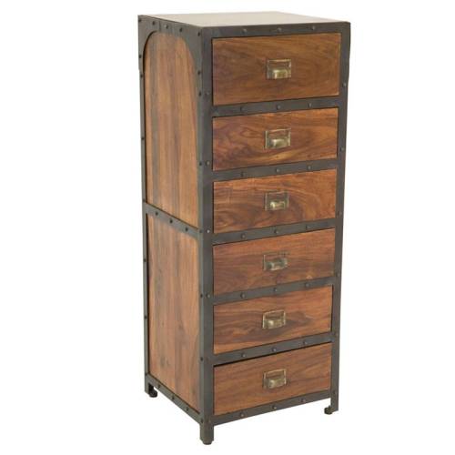 Superbe semainier industriel en palissandre et fer forgé composée de six tiroirs pour vos différents rangements. D'un style évoquant les manufactures d'antan avec son aspect industriel et son mélange de matériaux, il ajoutera du cachet à votre pièce tout en s'avérant fort utile.