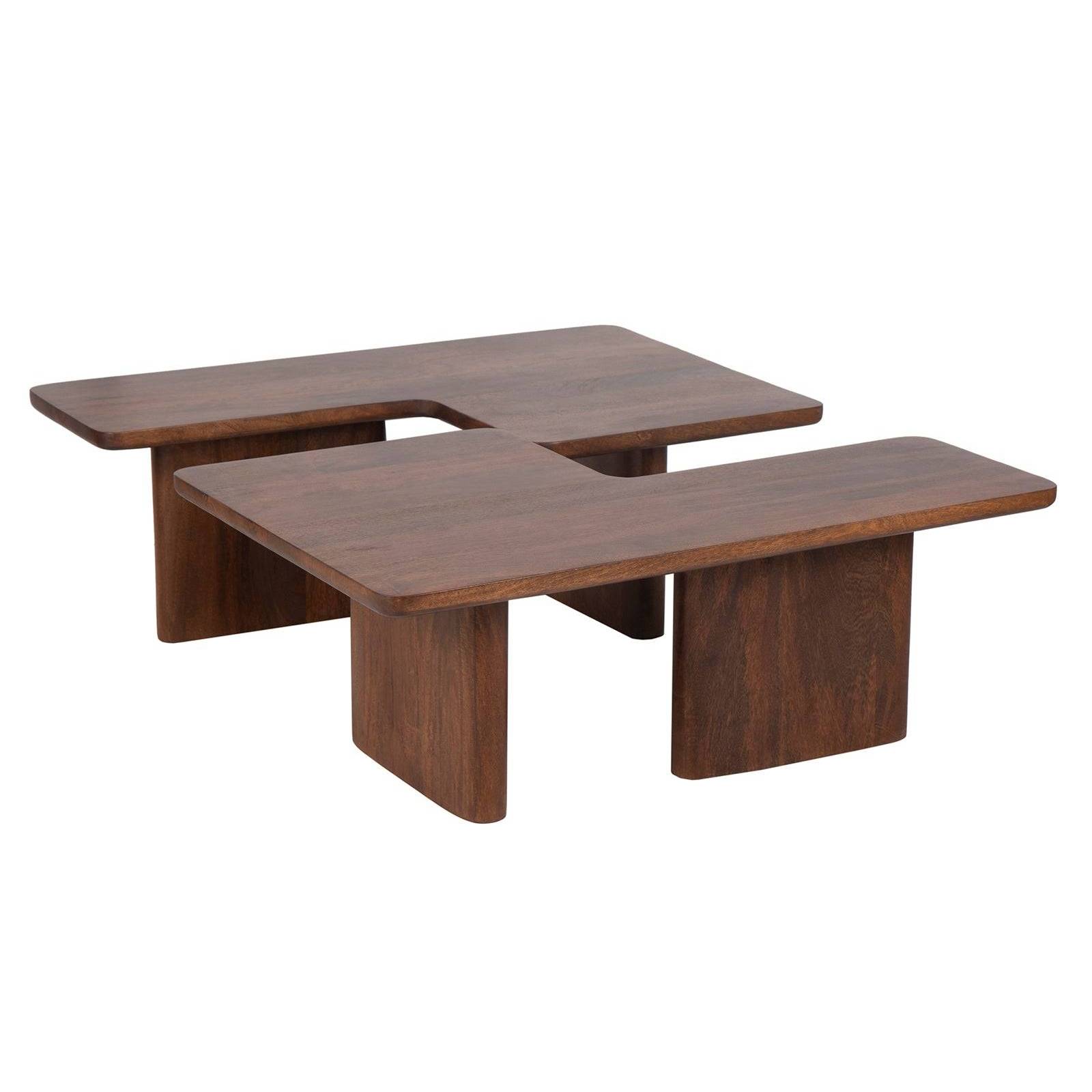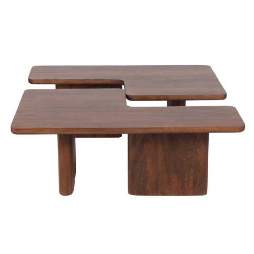 Apportez une touche d’élégance audacieuse et de fonctionnalité artistique à votre intérieur avec cet ensemble de tables basses sculpturales de la collection Element. Fabriquées en bois de manguier massif avec une finition chaleureuse en brun, ces tables mettent en valeur la texture riche et le caractère organique du bois, tout en offrant un design moderne axé sur l’équilibre et le minimalisme.