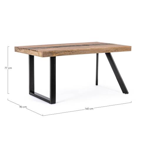 La table 160x90 offre à la fois stabilité et esthétique industrielle moderne. Son plateau en manguier et bois recyclé, lui confère beauté et originalité.