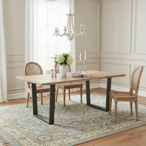 La table à manger bois et métal est la pièce maîtresse de votre séjour. Son style industriel s'harmonise avec allure à l'esprit authentique de son plateau en bois d'acacia massif.