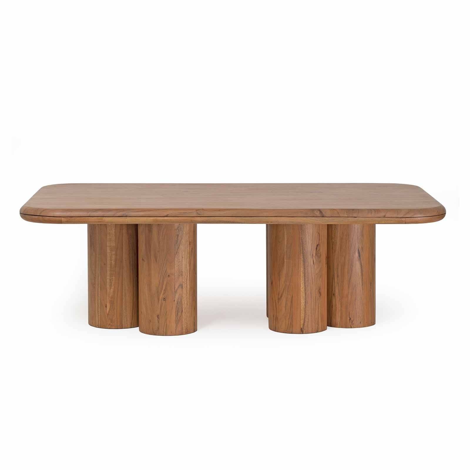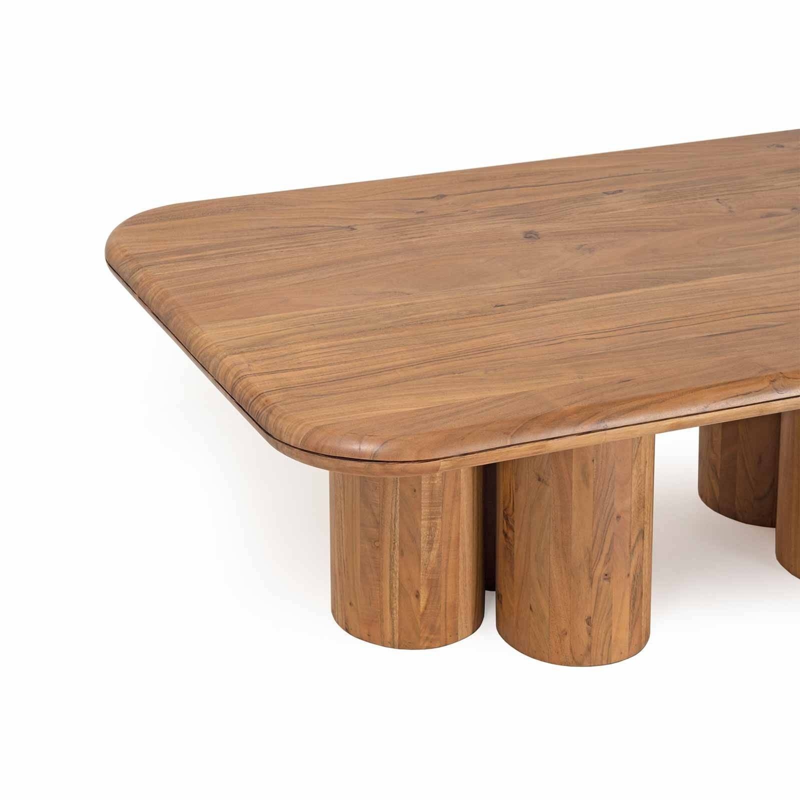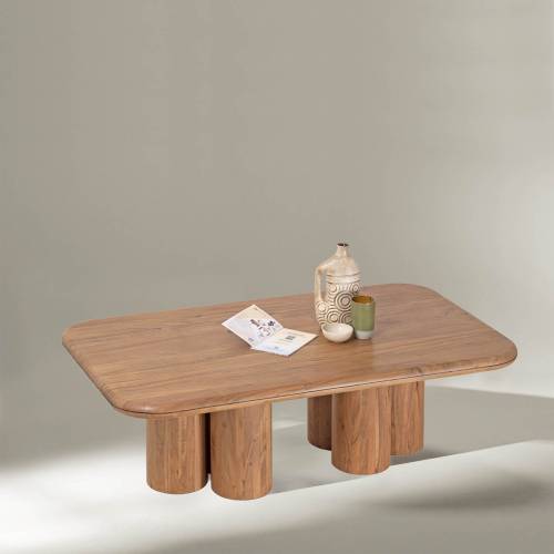 La table basse 140 cm en acacia massif de haute qualité présente une teinte naturelle qui s'harmonise parfaitement avec tous les styles d'intérieurs.