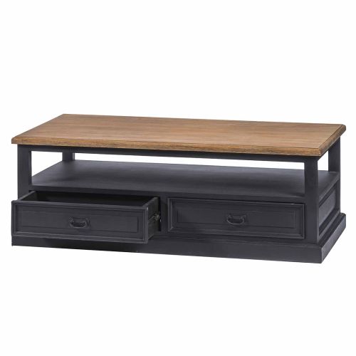 Apportez du style et de l'authenticité à votre salon avec cette table basse 2 tiroirs bicolore en teck et bois massif. Un design tout en sobriété qui allie avec subtilité style classique et actuel.